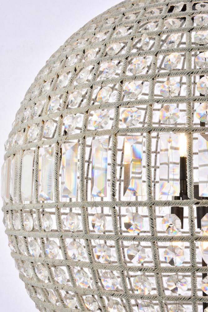 Lamp features a diameter of 36 inches, a height of 41 inches, and requires 8 candelabra lights