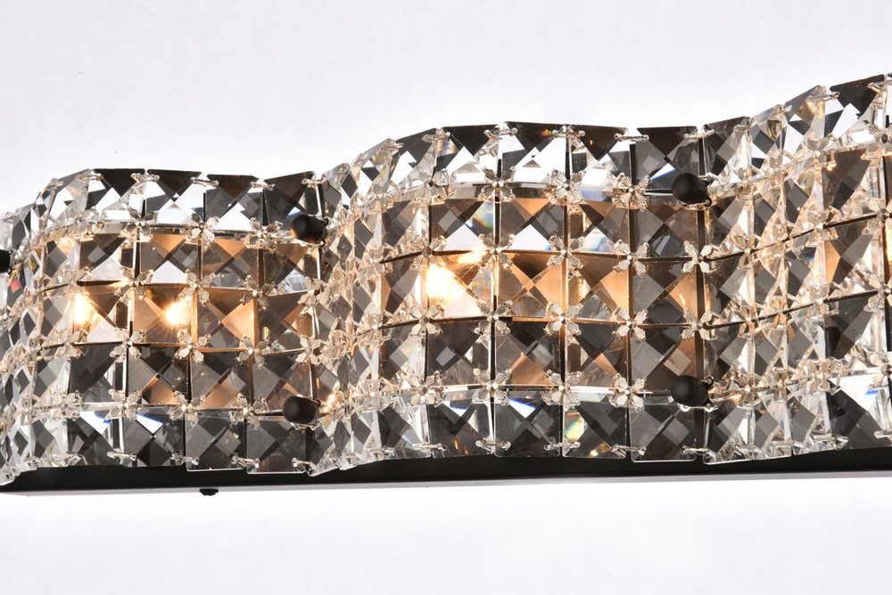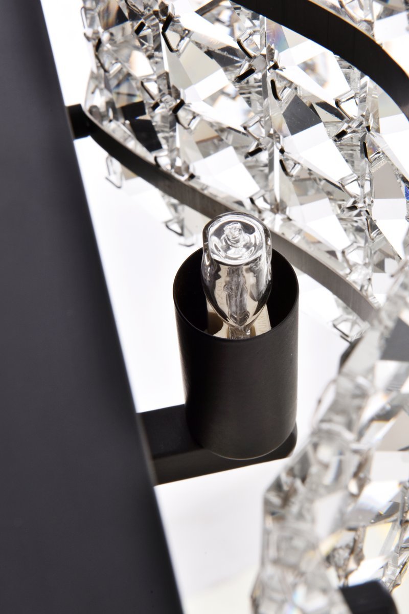 The Ollie Collection of wall lamps is a testament to the timeless beauty of crystals and lights. The gentle undulating clear crystal veil masks the coy lights that allows its lights to shine from within. The illumination creates a brilliant yet subtle glamour, and provides an ambience of alluring beauty. Available in a black finish, this wall lamp can adorn any room in need of radiant elegance (light bulbs not included).