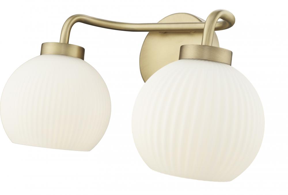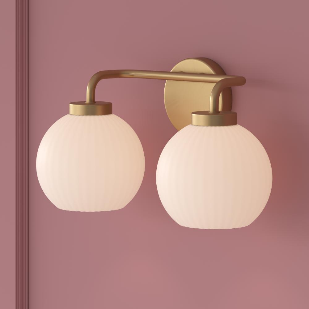 A modern interpretation of classic Edwardian-style lighting, the Oprah Family of vanity lighting features artfully curved arms finished in matte black, polished nickel, or vintage brass. The vintage-style, opal ribbed glass shades provide the perfect diffused task lighting for both the 2- and 3-light options and complement the overall aesthetic. These fixtures are a wonderful design solution for any bath from modern farmhouse to Craftsman-style bungalow.