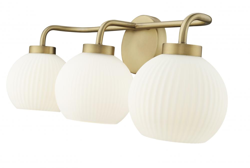A modern interpretation of classic Edwardian-style lighting, the Oprah Family of vanity lighting features artfully curved arms finished in matte black, polished nickel, or vintage brass. The vintage-style, opal ribbed glass shades provide the perfect diffused task lighting for both the 2- and 3-light options and complement the overall aesthetic. These fixtures are a wonderful design solution for any bath from modern farmhouse to Craftsman-style bungalow.