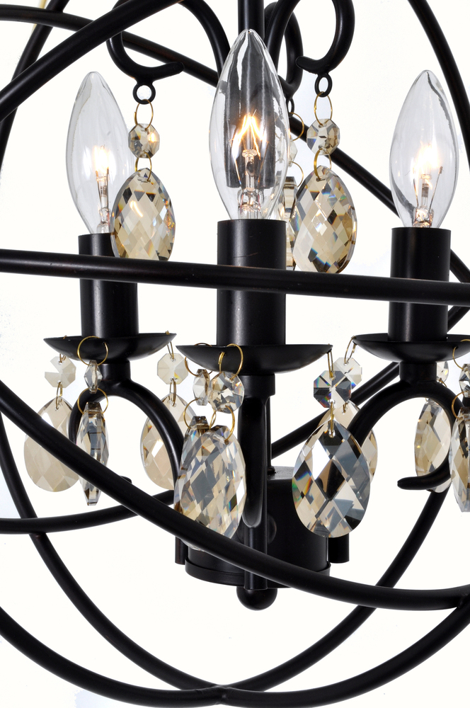 A spherical frame of metal surround a simple line chandelier draped in crystal for a transitional style that fits any interior design. Orbit is available in 2 sizes and 2 finishes, Oil Rubbed Bronze with Cognac crystal and a combo finish of Anthracite and