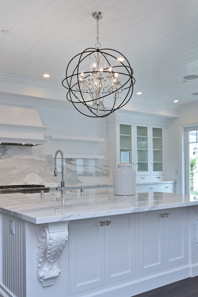 A spherical frame of metal surround a simple line chandelier draped in crystal for a transitional style that fits any interior design. Orbit is available in 2 sizes and 2 finishes, Oil Rubbed Bronze with Cognac crystal and a combo finish of Anthracite and