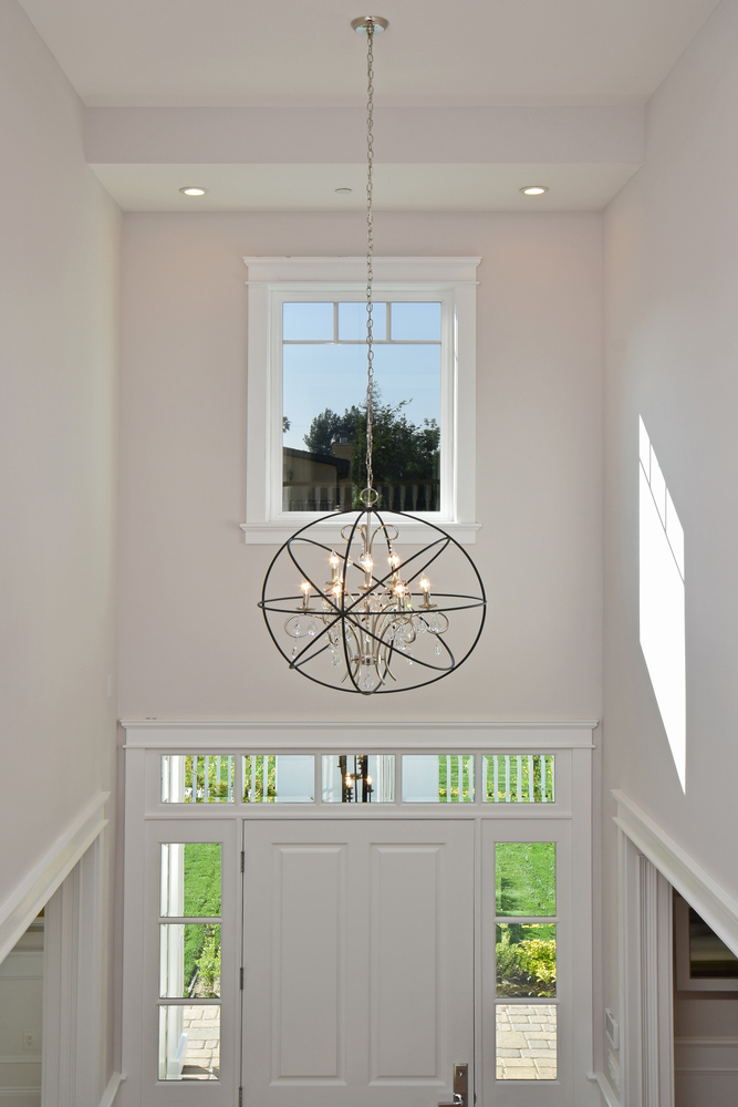 A spherical frame of metal surround a simple line chandelier draped in crystal for a transitional style that fits any interior design. Orbit is available in 2 sizes and 2 finishes, Oil Rubbed Bronze with Cognac crystal and a combo finish of Anthracite and