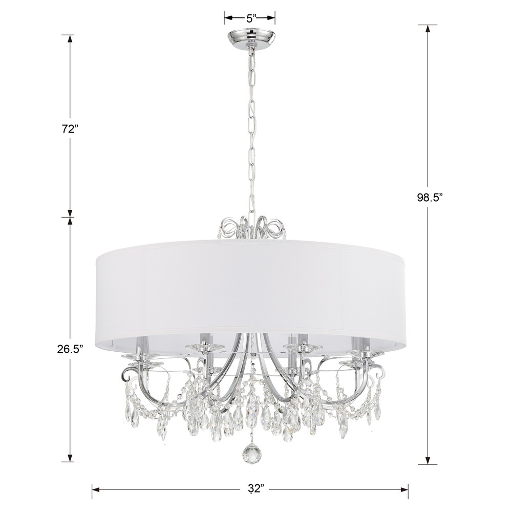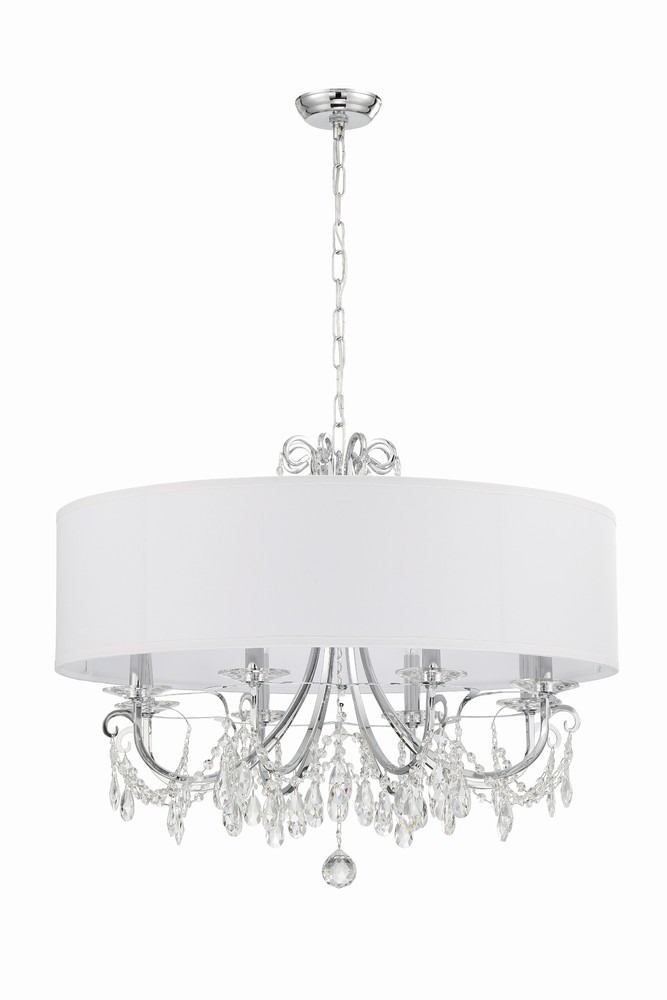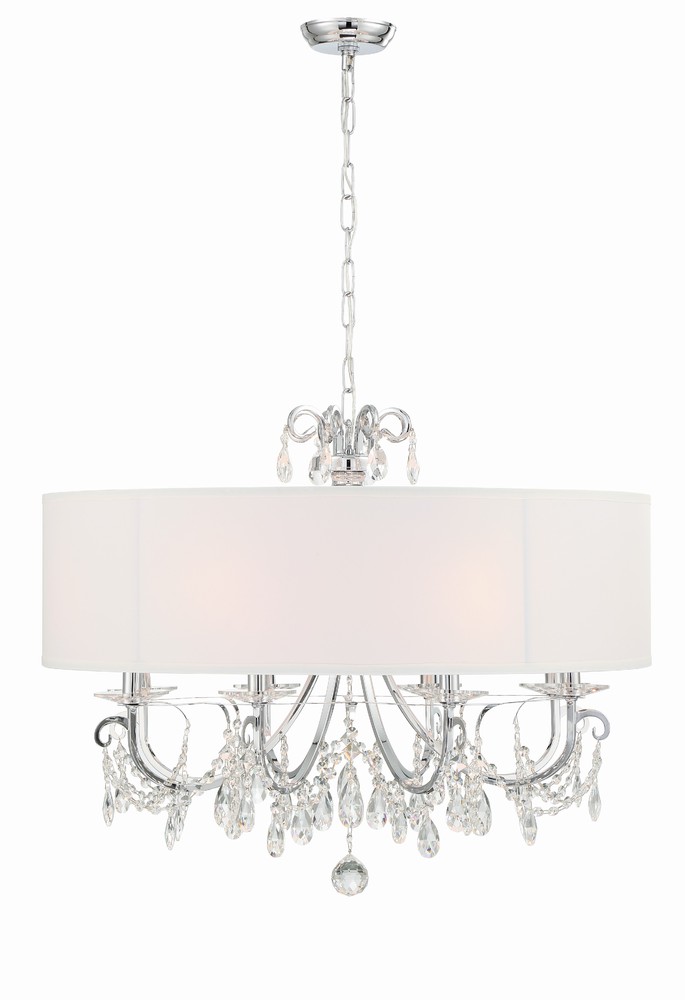 Classic like a timeless piece of jewelry, the Othello dazzles with traditional glamour. This elegant fixture is decorated with swags of faceted cut crystal jewels optimally cut for awe-inspiring sparkle and surrounded by a white silk drum shade to create a diffused lighting experience. These fixtures add the perfect bit of glam to any room and are sure to catch the eye and the light.