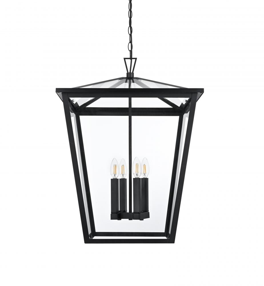 Introduce a classic and timeless glow to your outdoor space with this stunning lantern-style pendant light. Featuring a classic tapered frame and sophisticated matte black finish, this pendant light brings a refined, versatile aesthetic that enhances any home exterior, whether traditional or contemporary. with dual candelabra bulb holders, this pendant adds a vintage touch while ensuring bright, effective illumination. The tapered glass panels allow for maximum light output, creating a warm and inviting ambiance. Built from weather-resistant metal and ETL certified for wet locations, this pendant is crafted to withstand the elements while maintaining its beauty. Its adjustable chain allows for easy height customization, making it suitable for porches, patios, or entryways. Illuminate your home in style with this beautifully crafted outdoor pendant light.