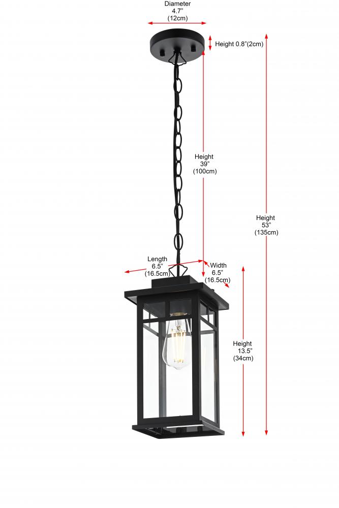 Bring classic craftsmanship and elegant simplicity to your outdoor spaces with this rectangular pendant light. with its craftsman-inspired design, featuring a sturdy black metal frame and clear glass panels, this pendant embodies timeless sophistication and modern functionality. The visible bulb design allows for maximum light output, while the matte black finish complements a range of outdoor aesthetics, from traditional to contemporary. Constructed with durable weather-resistant materials and certified for wet locations, this pendant is perfect for entryways, porches, or patios, ensuring long-lasting illumination. with its adjustable chain, you can easily customize the hanging height to perfectly suit your outdoor decor. Illuminate your home's exterior with this stylish pendant light, creating a welcoming atmosphere for your guests.
