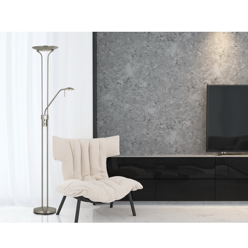 Pavia 30W LED Torchiere With 5W LED Reading Lamp With Dimmer Control For Uplight.