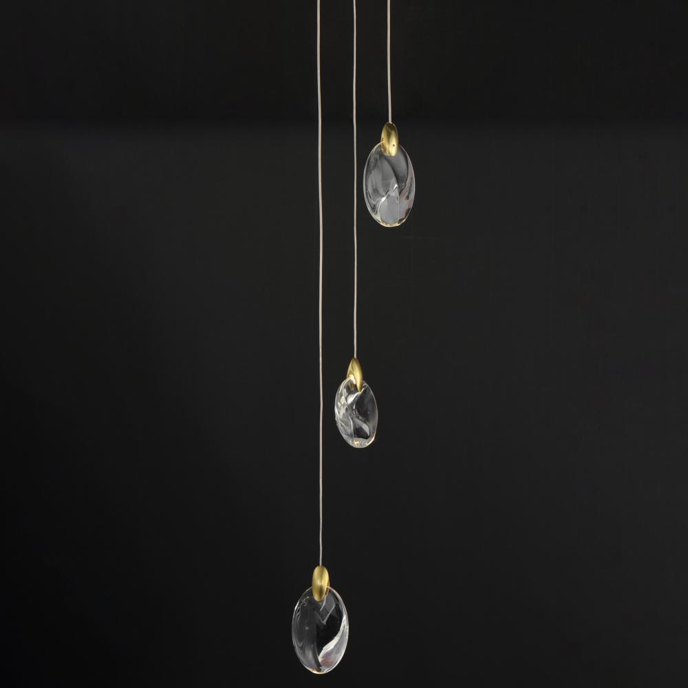 As if naturally formed from the ebbing shores of a riverbed, smooth and irregularly shaped crystal pebbles are suspended by cast metal clasps in a Polished Gold finish. Discreetly illuminated by concealed LED light sources within the clasps, additional dow
