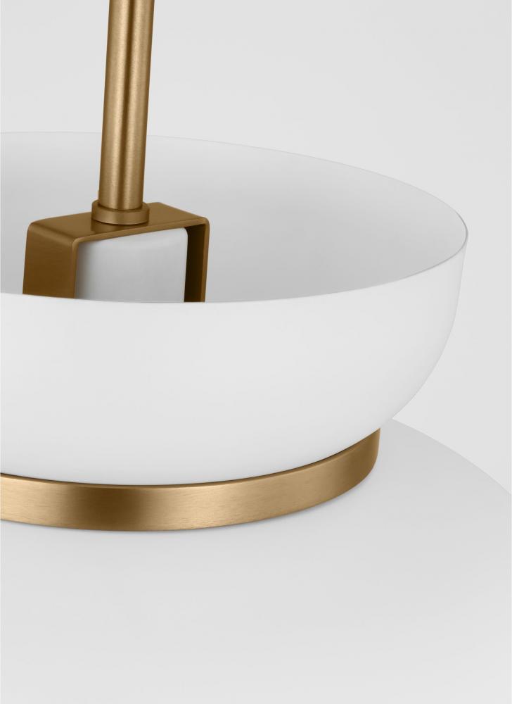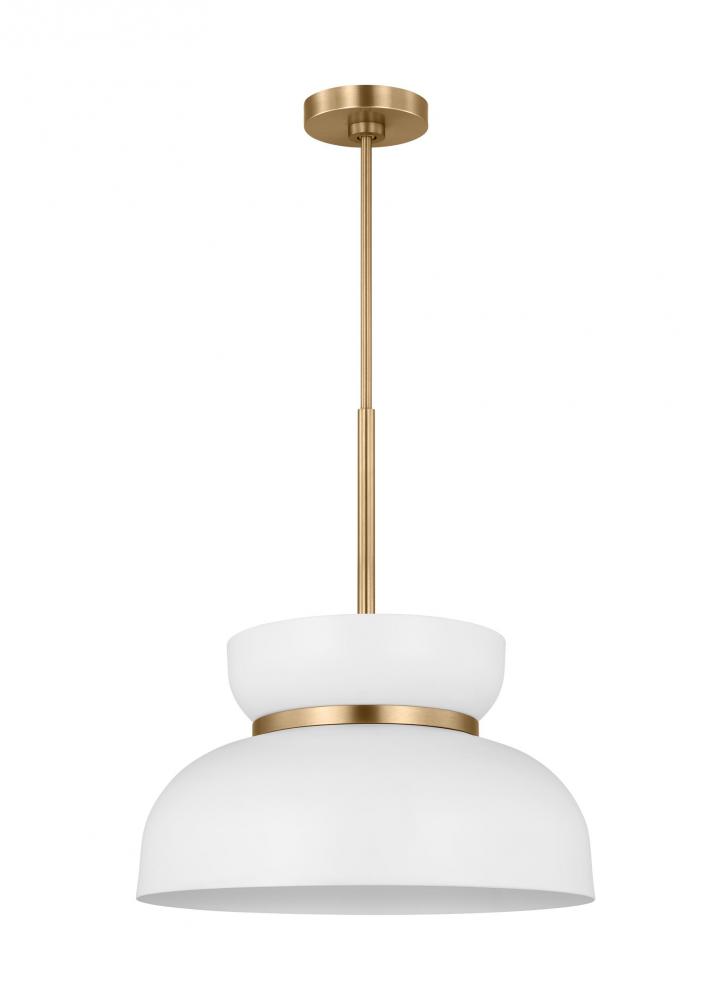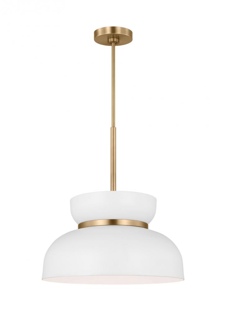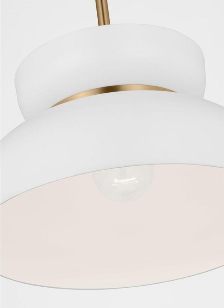 Defined by its modern, cinched silhouette, the Drew & Jonathan Pemberton Medium Pendant adds a sleek look with a touch of retro style through its dome-like metal shade and burnished brass metal accents. Available in two finishes, Midnight Black and Matte White, the Pemberton looks great on its own or when grouped in multiples. This product may be mounted on a sloped ceiling and is cETL listed for damp locations, making it the perfect lighting solution for any space.
