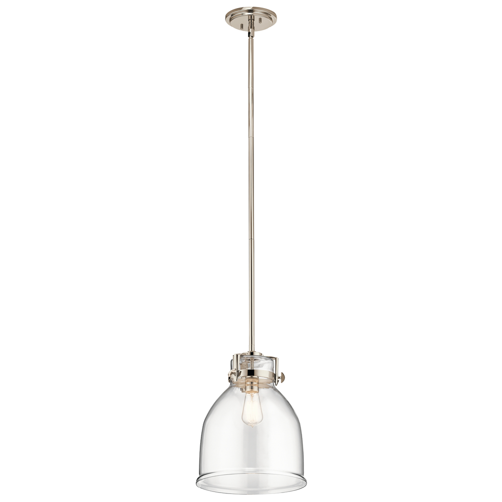 Generously sized to make a beautiful statement, the 1-light pendant in Polished Nickel from the Briar collection is both bold and simple. The top fitter gives it an industrial flair, while the bell shaped clear glass globes assure clean sight lines in open spaces.
