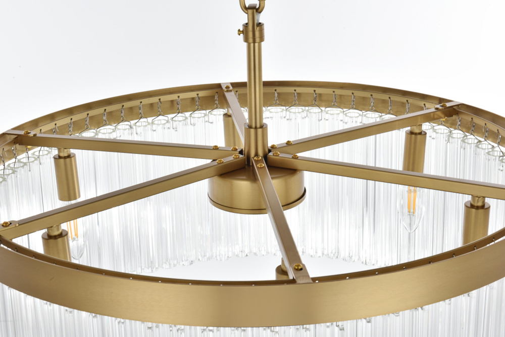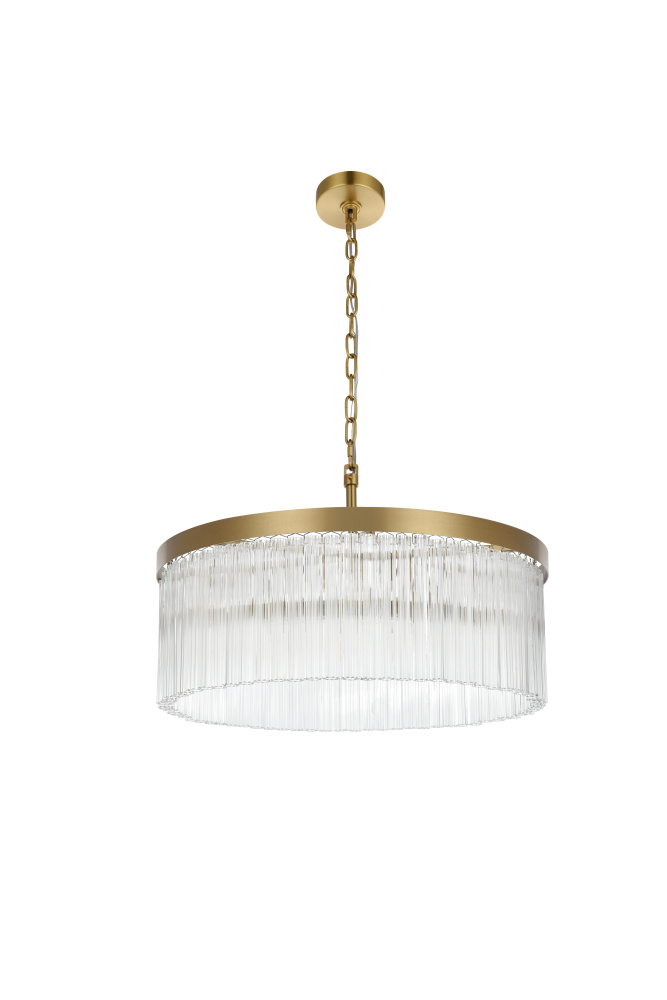 Turn your space into a glowing masterpiece with this striking pendant light, crafted from durable iron and shimmering clear ribbed glass. The cascading layers create a stunning interplay of light and shadow, refracting illumination into a radiant display that transforms your space into an illuminated work of art. Available in chrome for a sleek, contemporary aesthetic, black for bold contrast, and satin gold for an inviting warmth, this pendant light is as versatile as it is beautiful. Whether you choose a single tier for minimalist charm, two tiers for balanced depth, three tiers for bold presence, or four tiers for show-stopping grandeur, there’s an option for every setting. Featuring both round and rectangular frame designs, this fixture adapts to any space with ease. Complete with a matching canopy and chain, and fully dimmable for customized lighting, this pendant pairs perfectly with the coordinating single-tier flush mount and wall sconce collection, ensuring a cohesive, radiant design throughout youhome or office. Please note: light bulbs are sold separately.