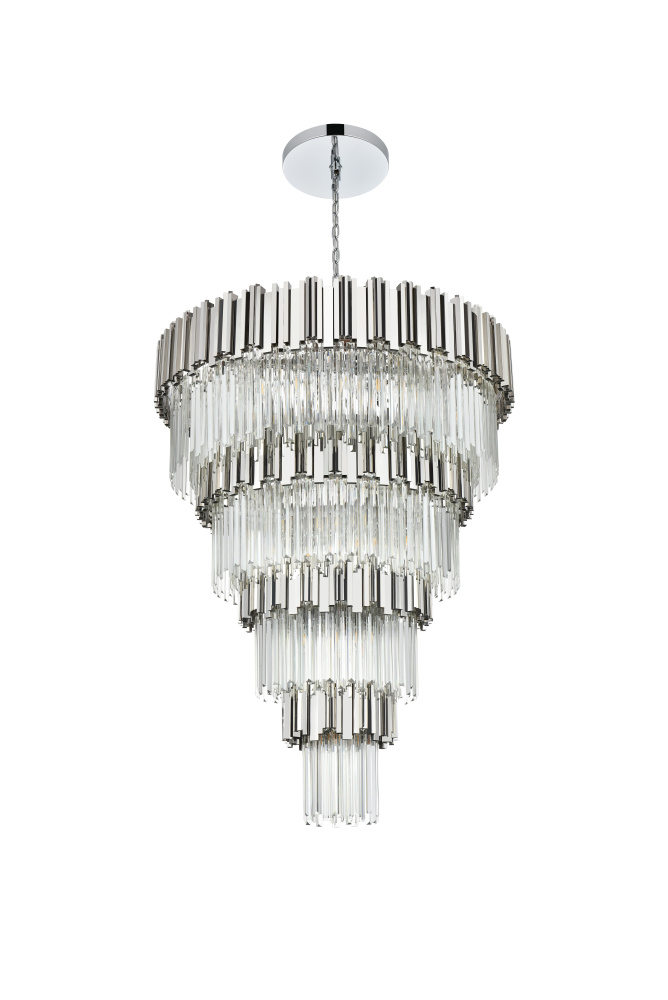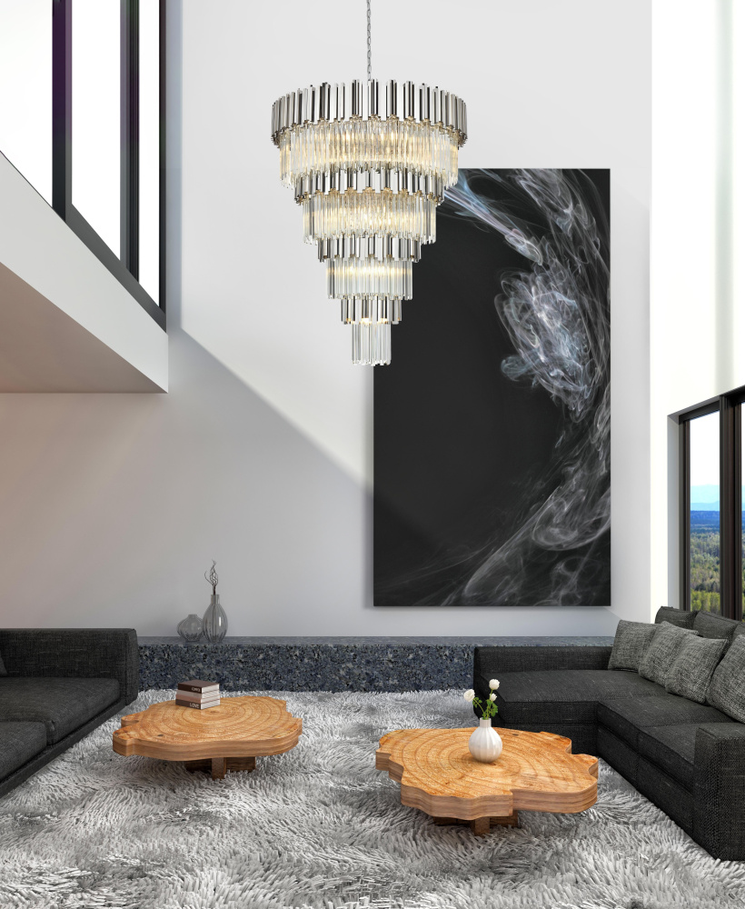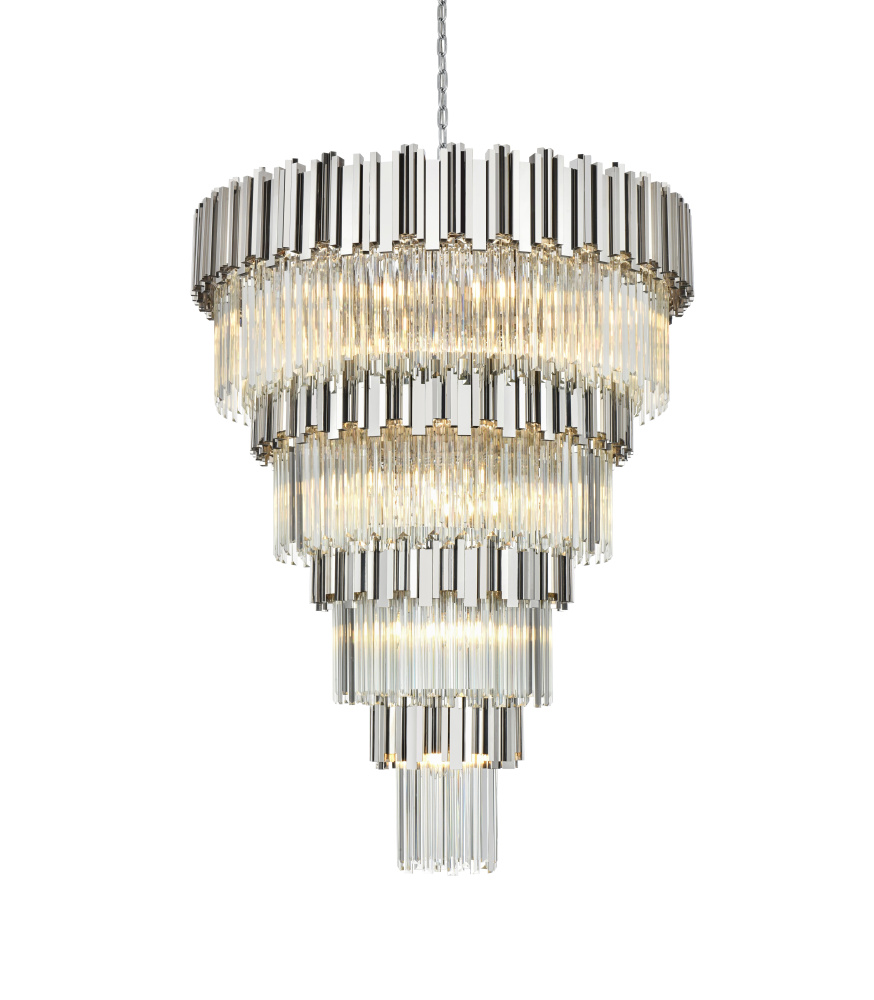Transform your space with this stunning chandelier, a dynamic fusion of iron and staggered clear glass that exudes contemporary style and architectural artistry. The layered glass refracts light beautifully, creating a radiant display of glowing brilliance that fills the room with warmth and sophistication. The staggered arrangement of the metal and glass adds depth and dimension, making this chandelier an eye-catching centerpiece. Fully dimmable, it allows you to adjust the ambiance to suit any mood, from bright and vibrant to soft and inviting. Available in satin gold for a warm, luxurious vibe, chrome for sleek modernity, and black for bold, dramatic contrast, this fixture comes in various sizes to perfectly complement any space. Complete with a matching canopy, it’s an ideal choice for dining rooms, living rooms, or offices. Add a touch of refined geometry to your décor and bask in the brilliance of this radiant desi
