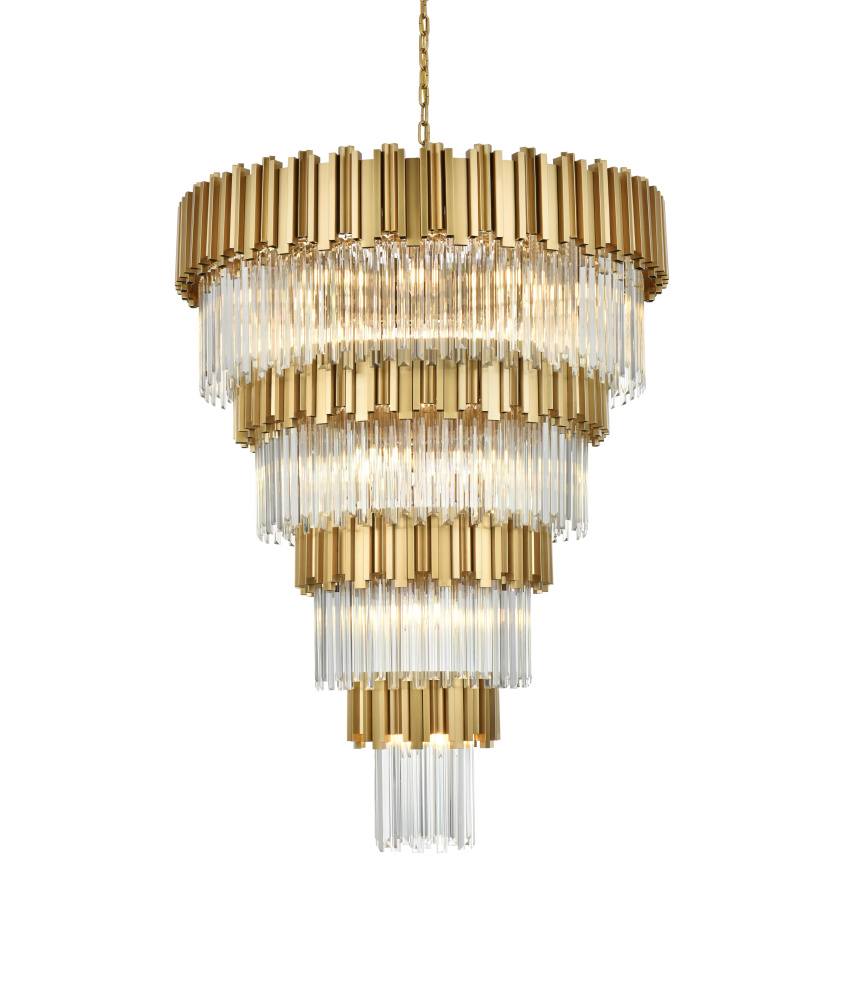 Transform your space with this stunning chandelier, a dynamic fusion of iron and staggered clear glass that exudes contemporary style and architectural artistry. The layered glass refracts light beautifully, creating a radiant display of glowing brilliance that fills the room with warmth and sophistication. The staggered arrangement of the metal and glass adds depth and dimension, making this chandelier an eye-catching centerpiece. Fully dimmable, it allows you to adjust the ambiance to suit any mood, from bright and vibrant to soft and inviting. Available in satin gold for a warm, luxurious vibe, chrome for sleek modernity, and black for bold, dramatic contrast, this fixture comes in various sizes to perfectly complement any space. Complete with a matching canopy, it’s an ideal choice for dining rooms, living rooms, or offices. Add a touch of refined geometry to your décor and bask in the brilliance of this radiant desi