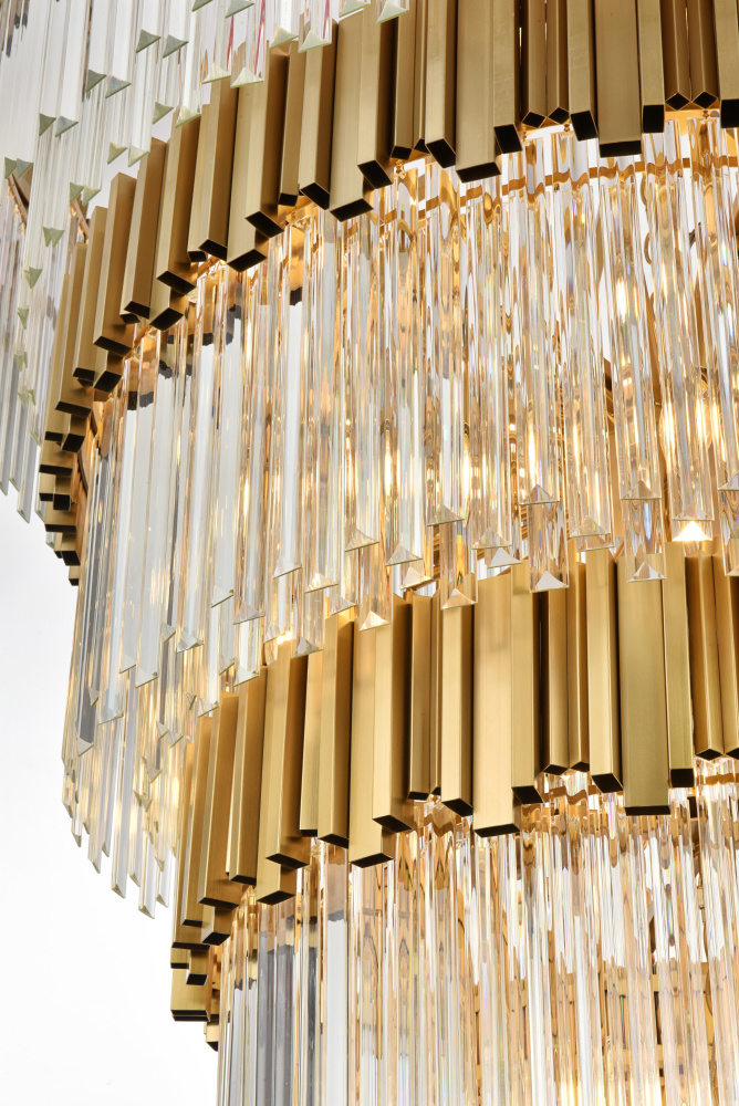 Transform your space with this stunning chandelier, a dynamic fusion of iron and staggered clear glass that exudes contemporary style and architectural artistry. The layered glass refracts light beautifully, creating a radiant display of glowing brilliance that fills the room with warmth and sophistication. The staggered arrangement of the metal and glass adds depth and dimension, making this chandelier an eye-catching centerpiece. Fully dimmable, it allows you to adjust the ambiance to suit any mood, from bright and vibrant to soft and inviting. Available in satin gold for a warm, luxurious vibe, chrome for sleek modernity, and black for bold, dramatic contrast, this fixture comes in various sizes to perfectly complement any space. Complete with a matching canopy, it’s an ideal choice for dining rooms, living rooms, or offices. Add a touch of refined geometry to your décor and bask in the brilliance of this radiant desi
