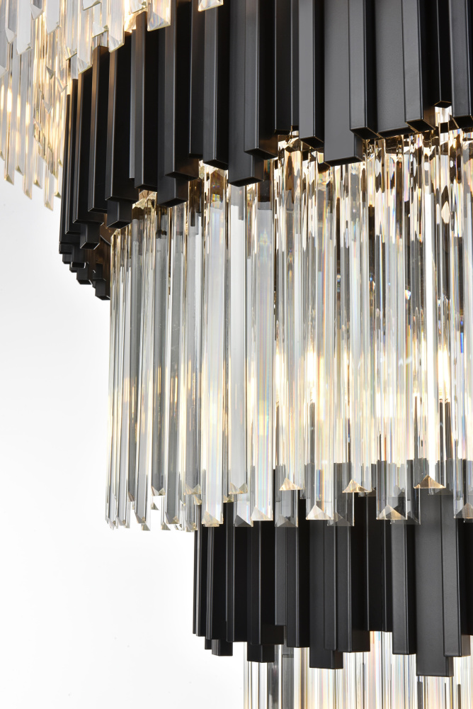 Transform your space with this stunning chandelier, a dynamic fusion of iron and staggered clear glass that exudes contemporary style and architectural artistry. The layered glass refracts light beautifully, creating a radiant display of glowing brilliance that fills the room with warmth and sophistication. The staggered arrangement of the metal and glass adds depth and dimension, making this chandelier an eye-catching centerpiece. Fully dimmable, it allows you to adjust the ambiance to suit any mood, from bright and vibrant to soft and inviting. Available in satin gold for a warm, luxurious vibe, chrome for sleek modernity, and black for bold, dramatic contrast, this fixture comes in various sizes to perfectly complement any space. Complete with a matching canopy, it’s an ideal choice for dining rooms, living rooms, or offices. Add a touch of refined geometry to your décor and bask in the brilliance of this radiant desi