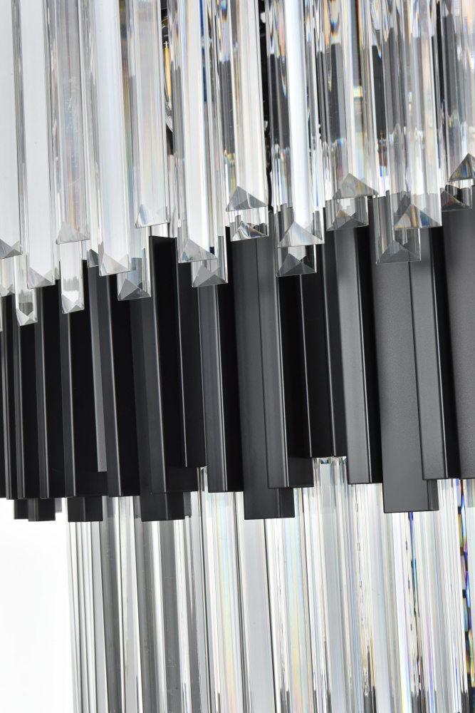 The staggered clear glass pieces add depth and dimension, creating a layered effect that enhances the visual appeal.
