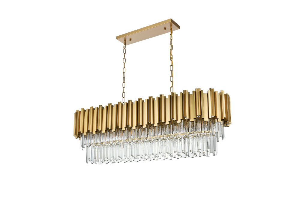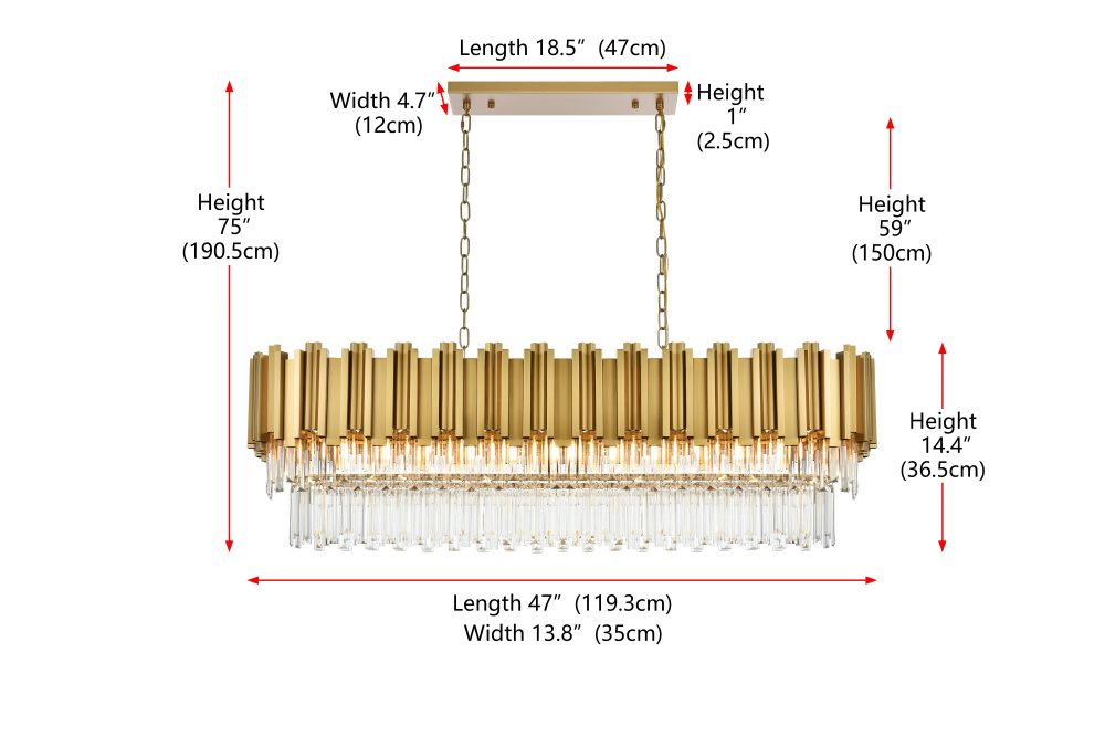 Make a bold statement with this stunning rectangular chandelier, where modern geometry meets luminous artistry. Featuring a sturdy iron frame with a staggered design and cascading clear glass accents, this fixture refracts light into a dazzling array of brilliance, creating a dynamic interplay of light and shadow. The dramatic black finish complements the shimmering glass, emphasizing the sleek, contemporary design. Perfect for dining rooms, spacious living areas, or professional settings, this chandelier transforms any space into a radiant centerpiece. Fully dimmable, it allows you to customize the ambiance to suit any occasion. Complete with a matching canopy and easy installation, this chandelier redefines modern lighting with its bold structure and captivating glow.