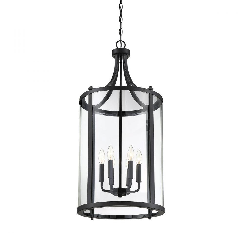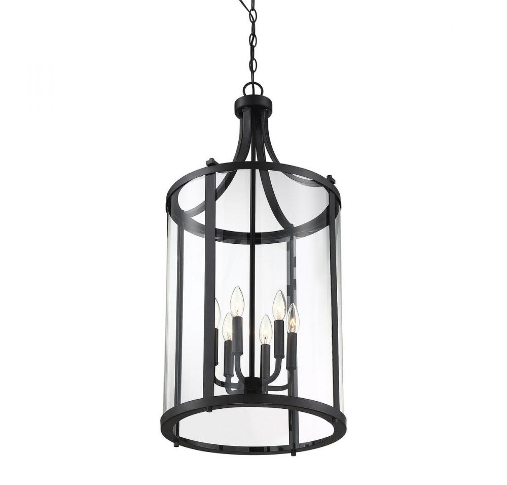 This sleek, cylindrical Penrose 6-light foyer light from Savoy House is an excellent choice for lovers of stylish modern design. It features clear glass and is finished in bold matte black. Foyer lights are often used in foyers and entryways, but can also be used in great rooms, kitchens, offices, bedrooms and bathrooms too! Bulbs not included. Try using stylized bulbs like Edison or tubular bulbs for a different look! The matte black finish can be matched with black hardware or mixed with hardware in other finishes. Bring Penrose into rooms of any style, especially transitional or classic, for a big touch of lighting allure. When you choose a Savoy House lighting fixture, you can be certain you've selected a piece that will withstand the test of time.