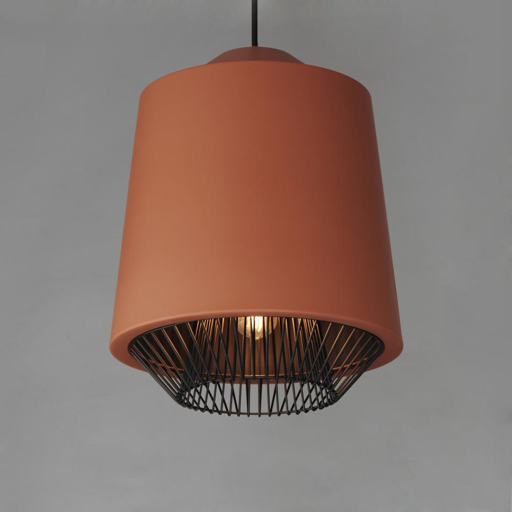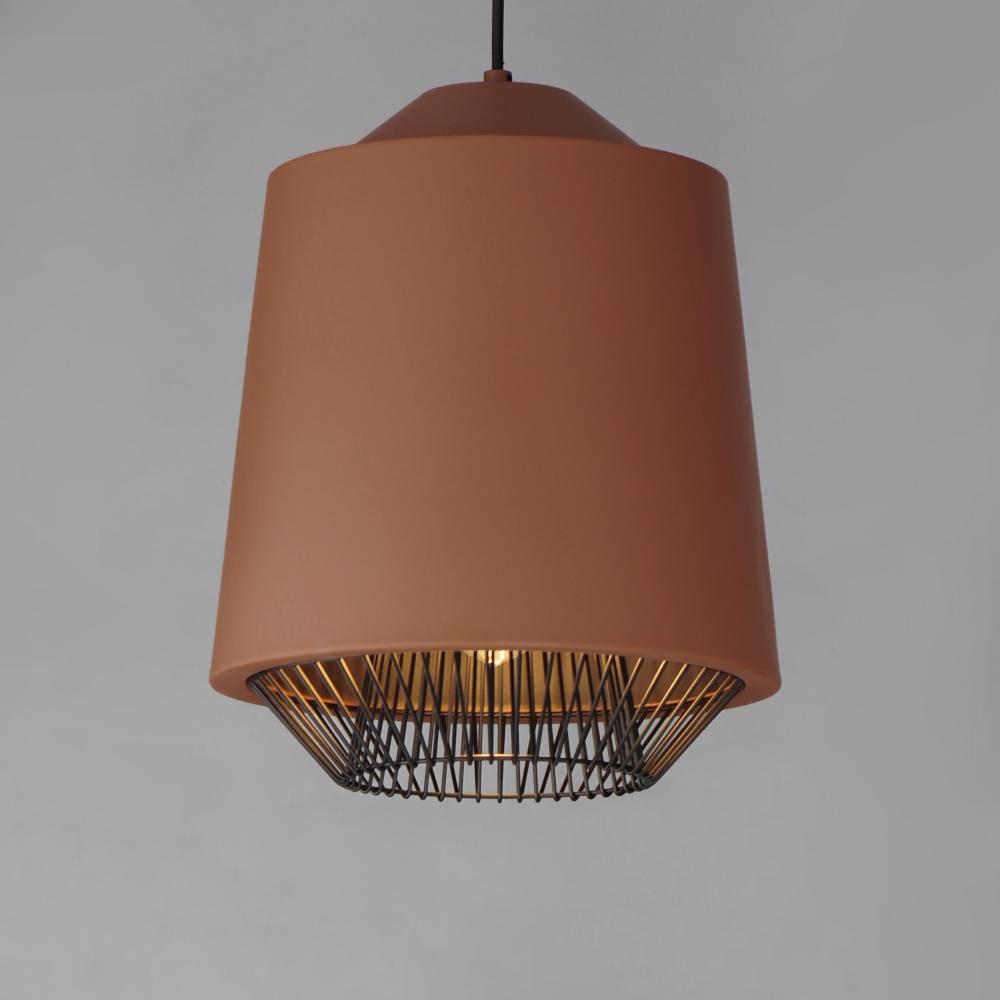 Both modern and industrial, the angular lines of these aluminum spun shades refresh a classic concept in a clean, contemporary execution. The shades - available in Brick, Black, and a Pale Gray powder coated finish, feature multiple joints and peaks in the