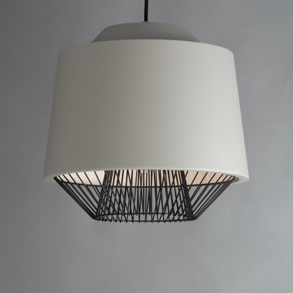 Both modern and industrial, the angular lines of these aluminum spun shades refresh a classic concept in a clean, contemporary execution. The shades - available in Brick, Black, and a Pale Gray powder coated finish, feature multiple joints and peaks in the