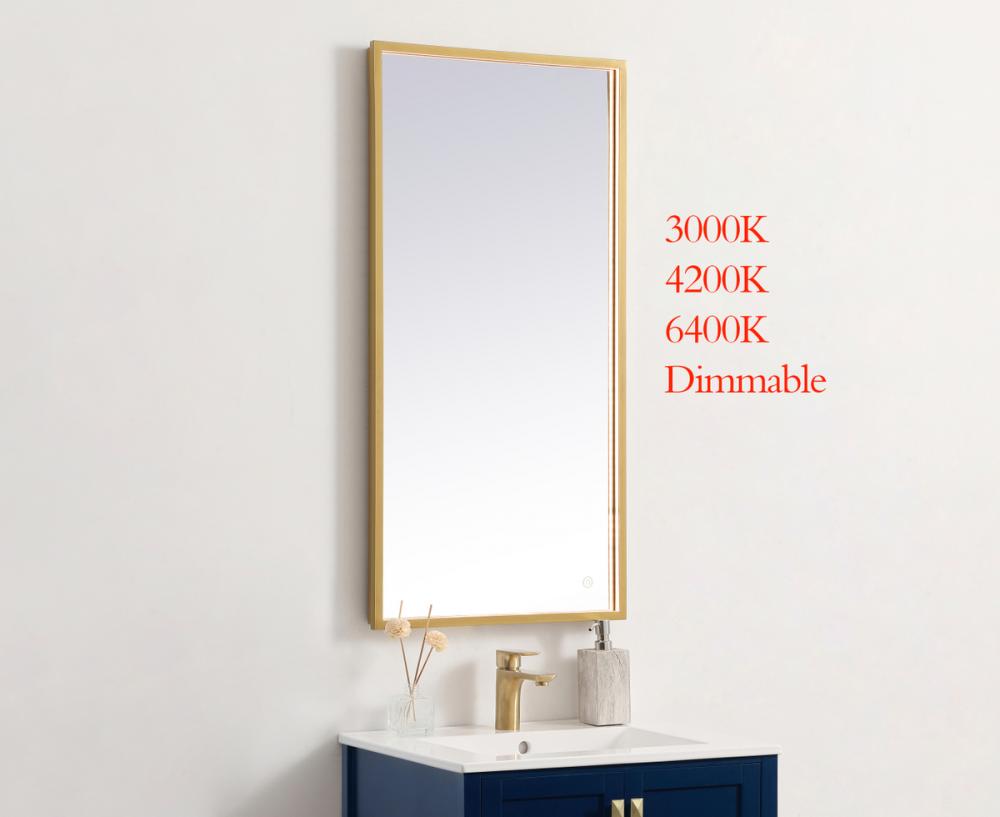 Pier 20x30 inch LED mirror with adjustable color temperature 3000K/4200K/6400K in brass