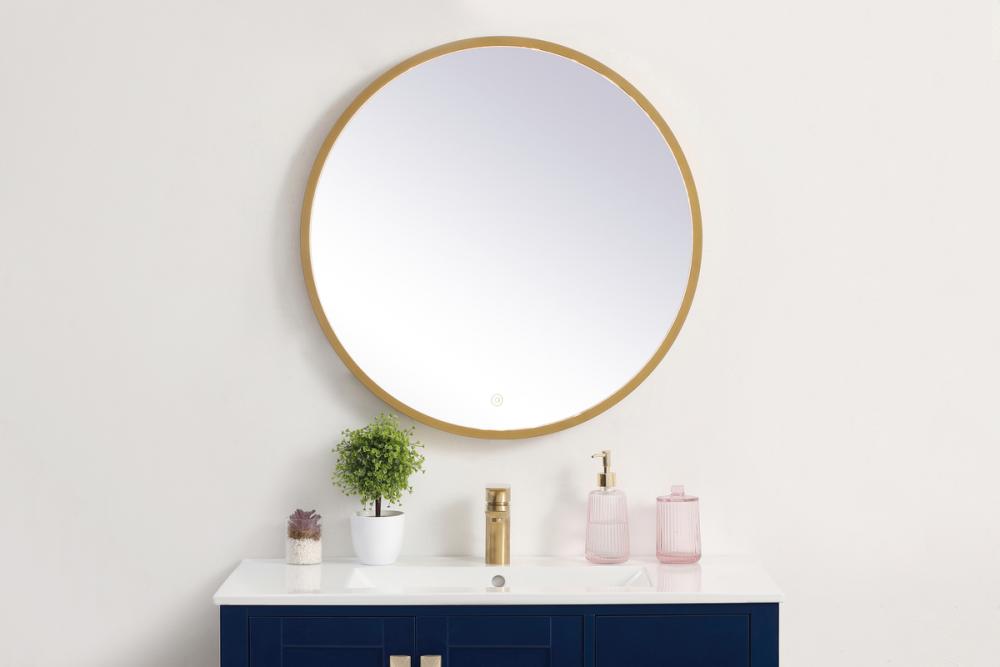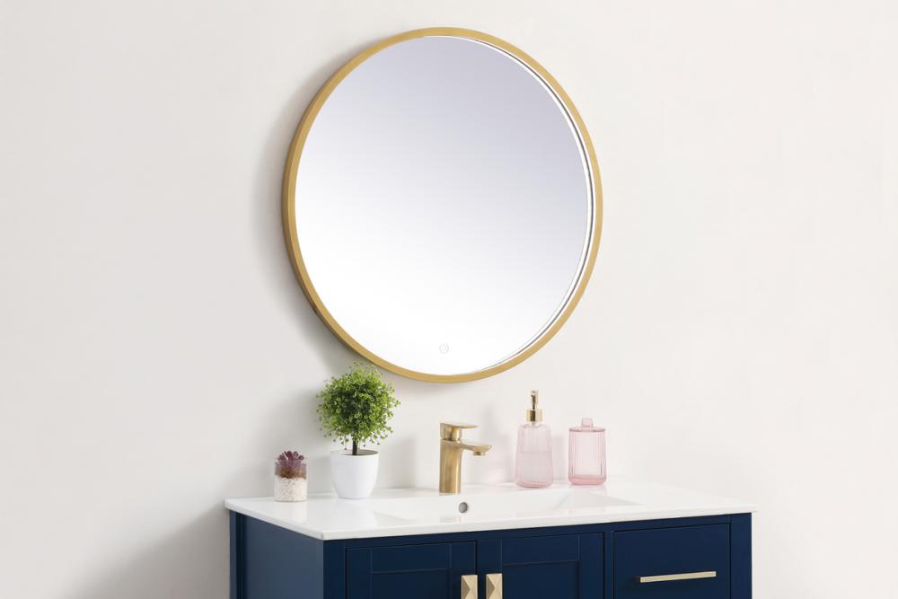 Pier 28 inch LED mirror with adjustable color temperature 3000K/4200K/6400K in brass