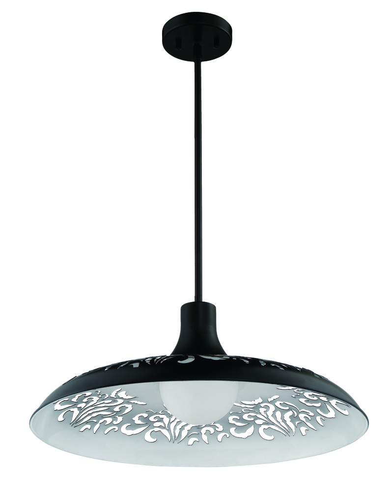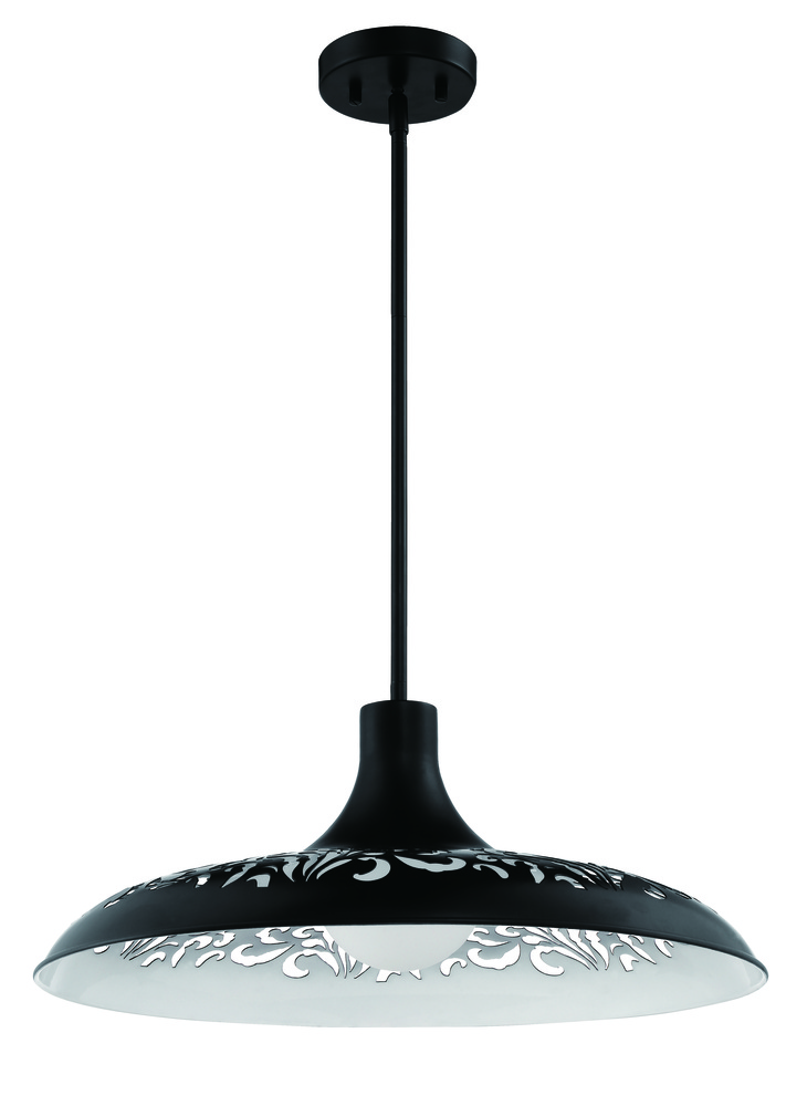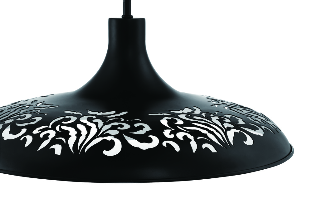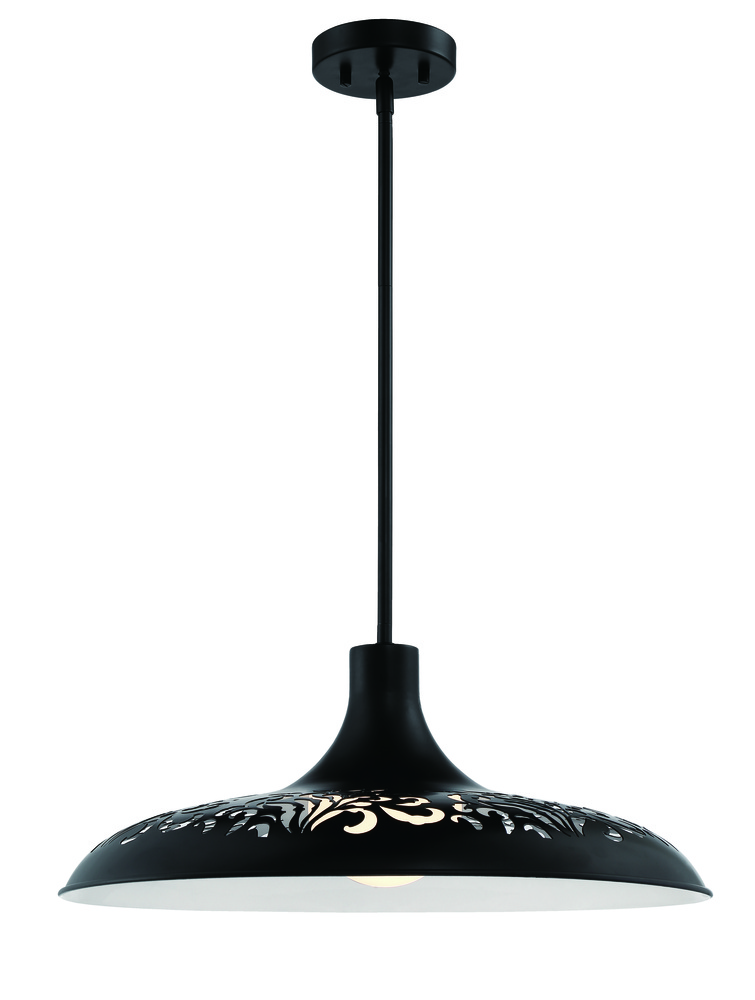 The Pocco 1 Light Pendant from Craftmade features patterned cut outs in the dome that allow the light to create playful shadows. Customize the height with included rods. Available in all brushed polished nickel or flat black with white interior.