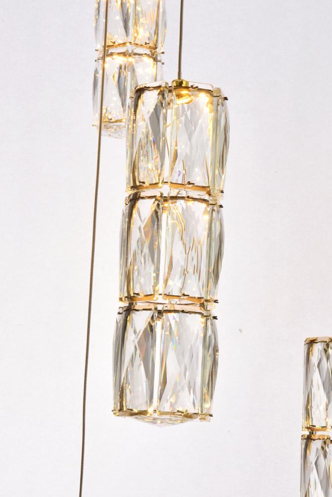 This chandelier is specially designed to be used on sloped ceilings, allowing you to install it in rooms with angled or vaulted ceilings. It ensures that you can enjoy the stunning crystal faceted design and warm LED lighting in any area of your home.