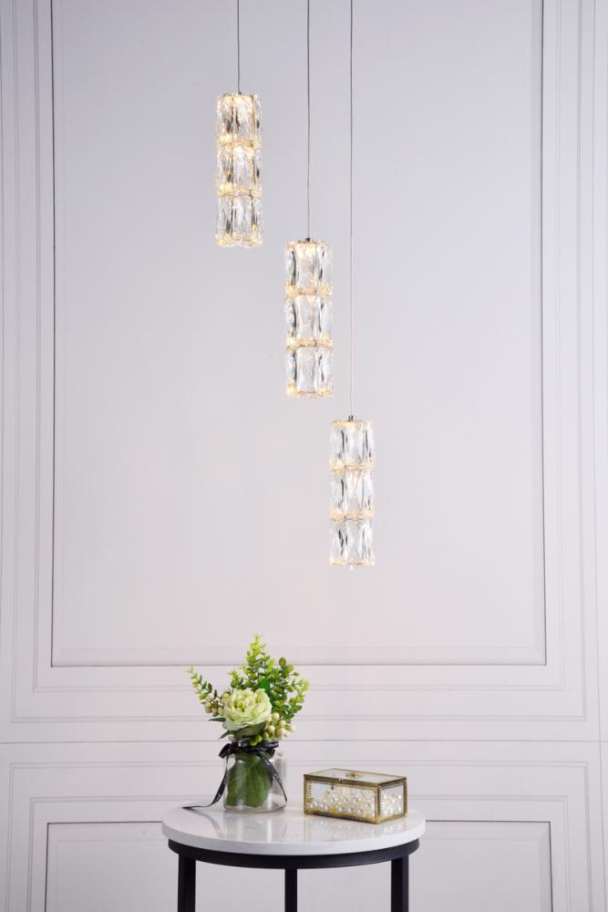 The Polaris collection is the epitome of "cool" in lighting, because each of the fixtures has rectangular, elegant-cut crystals that look like ice cubes, gracefully suspended from a stainless-steel base with a bright chrome finish. Designed for rooms with higher ceilings, these fixtures are definitely stylistic attention-getters.