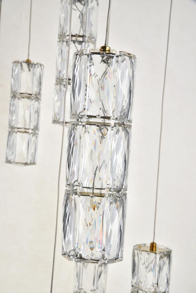 The Polaris collection is the epitome of "cool" in lighting, because each of the fixtures has rectangular, elegant-cut crystals that look like ice cubes, gracefully suspended from a stainless-steel base with a bright gold finish. Designed for rooms with higher ceilings, these fixtures are definitely stylistic attention-getters.
