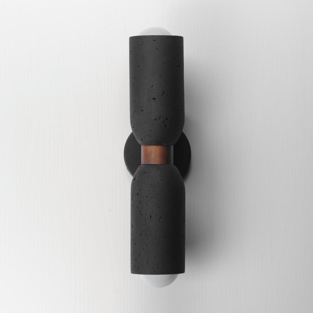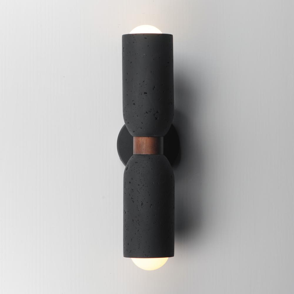 A tribute of natural materials, this collection features carved stone shades in your choice of Travertine or volcanic Lava Rock, paired with coordinating lathed wood bases. The Travertine composition showcases White Oak wood and Ecru white metal accents, w