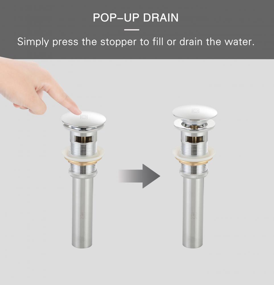 Upgrade your bathroom with our Pop-Up Drainer with Overflow Hole, designed to combine functionality, durability, and style. Available in four stunning finishes - Brushed Gold, Polished Chrome, Brushed Nickel, and Matte Black - this drainer seamlessly complements any bathroom vanity sink with an overflow. Constructed from a premium blend of plastic, stainless steel, and solid brass, this drainer ensures exceptional durability and meets cUPC certification standards for top-tier quality. Designed for ease of use, the pop-up drainer features a simple push-button mechanism, allowing you to seal and release with a single press. Finished to resist rust and corrosion, this drainer maintains its pristine appearance and reliable performance over time. Enhance your bathroom’s functionality and aesthetic with this durable pop-up drainer.
