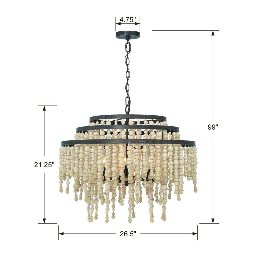 In a perfect combination of texture and materials, the Poppy chandelier's cascading in frosted glass or wooden beads create a rich visual impact on an interior. Whether the look is rustic, boho, or has a coastal vibe, this light is as versatile as stylish.