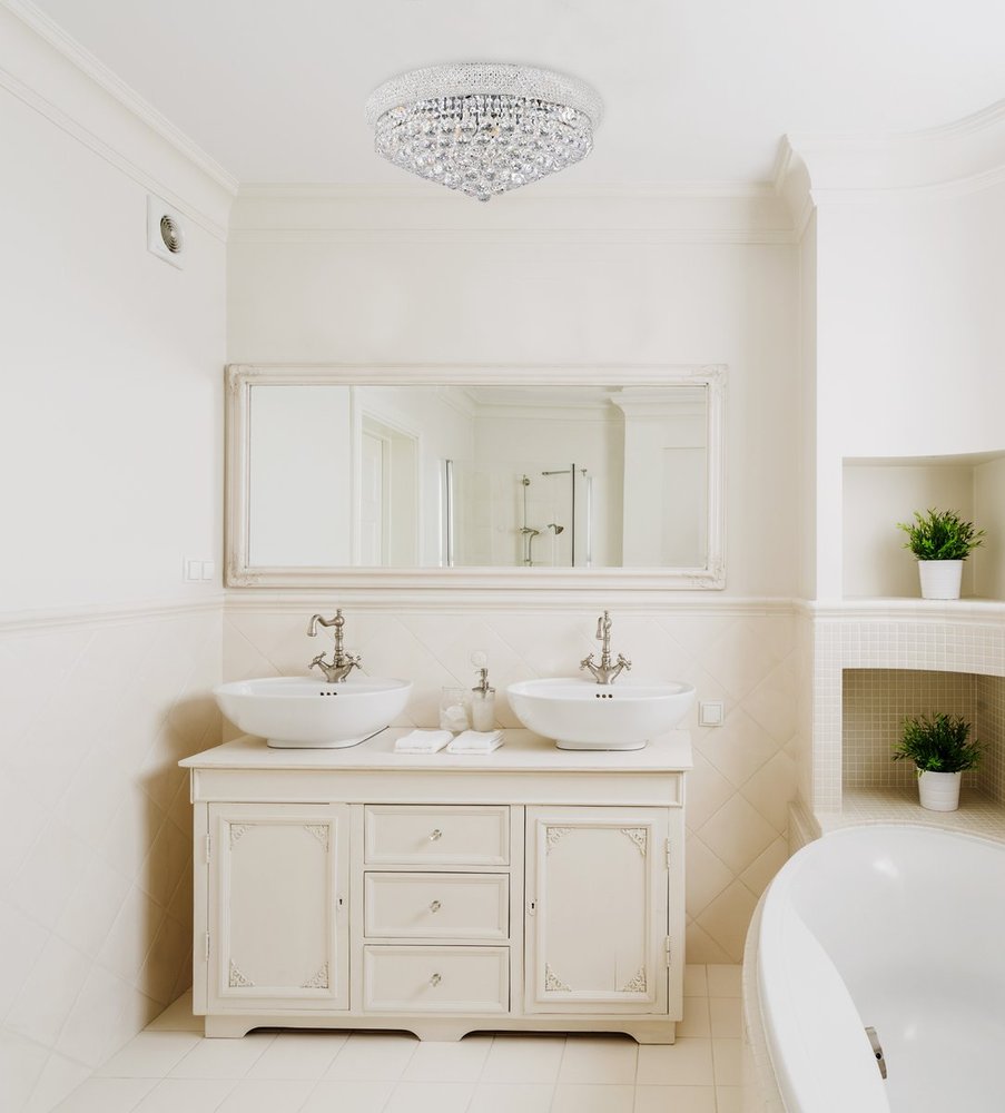Primo flush-mount fixtures come in finishes of brilliant chrome or gold, which are refracted in the clear crystals