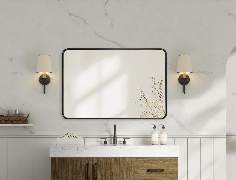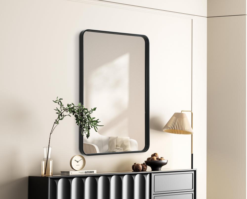 Elevate your home decor with this versatile wall mirror that combines functionality and modern design. Made from a sturdy combination of MDF, iron, and reflective mirror glass, this piece is built to last while adding a polished finish to any room. The extended depth of the frame not only provides a striking dimensional effect but also ensures the mirror’s presence commands attention as a focal point. Whether you're decorating a bedroom, bathroom, or entryway, its diverse shapes—including rectangle and square—offer plenty of options to suit your style. The hand-painted black, brass, or silver finish brings a subtle yet striking touch, complemented by rounded corners for a smooth and contemporary aesthetic. with four metal inset hangers, it's ready to hang vertically or horizontally, ensuring flexibility for any layout. Available in multiple sizes, this mirror is a statement piece that blends seamlessly into both modern and classic spaces.