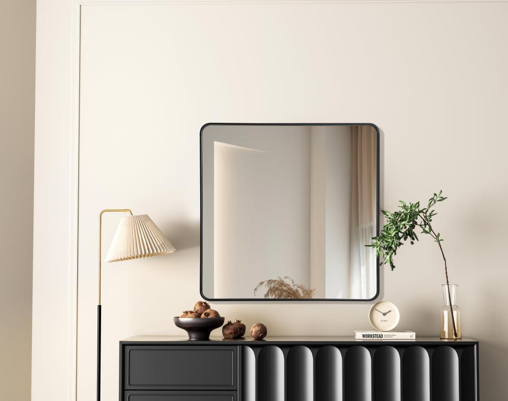 Elevate your home decor with this versatile wall mirror that combines functionality and modern design. Made from a sturdy combination of MDF, iron, and reflective mirror glass, this piece is built to last while adding a polished finish to any room. The extended depth of the frame not only provides a striking dimensional effect but also ensures the mirror’s presence commands attention as a focal point. Whether you're decorating a bedroom, bathroom, or entryway, its diverse shapes—including rectangle and square—offer plenty of options to suit your style. The hand-painted black, brass, or silver finish brings a subtle yet striking touch, complemented by rounded corners for a smooth and contemporary aesthetic. with four metal inset hangers, it's ready to hang vertically or horizontally, ensuring flexibility for any layout. Available in multiple sizes, this mirror is a statement piece that blends seamlessly into both modern and classic spaces.