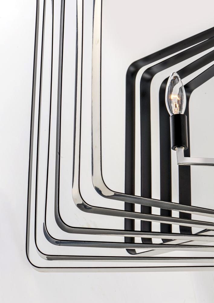 A fun and unique design the features numerous concentric rings finished Black on the outside and Gold on the inside that pivot from a center point. The rings can be configured from completely flat to full repeated symmetry and anything in between to allow