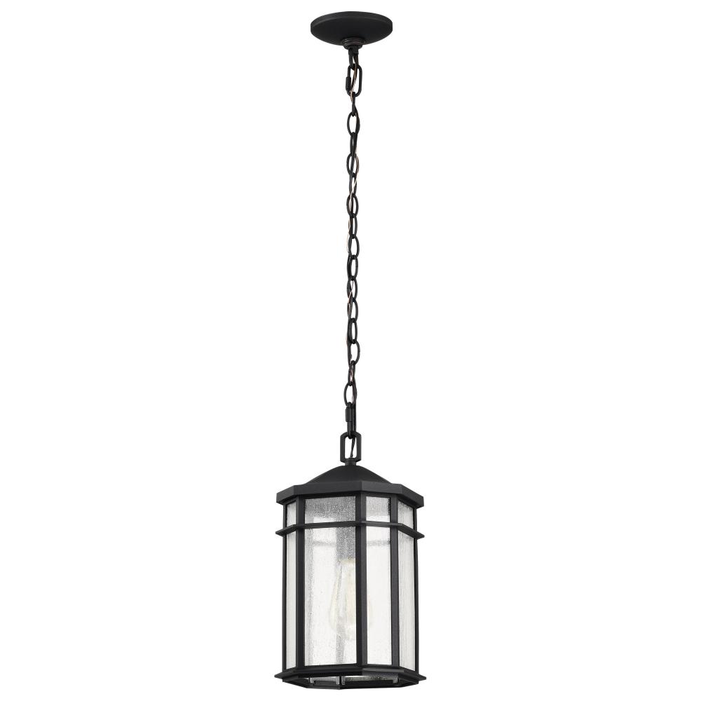 The Raiden 60-5759 Outdoor Hanging Light features a traditional design yet is suited to today's contemporary lighting styles. The clear seeded glass delivers an aged patina softly illuminated by the bulb. The matte black finish showcases the fixture