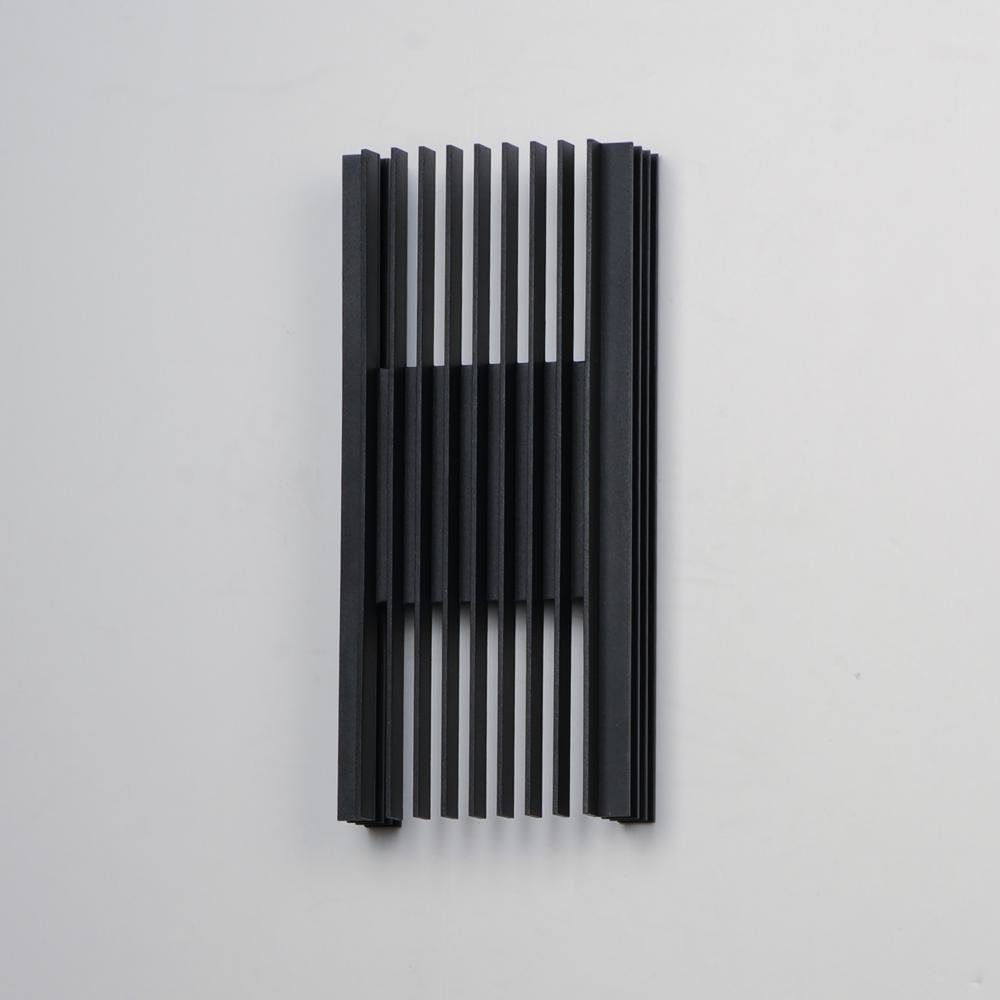 Sharp rectilinear metal lines surround a squared LED housing that shines both upwards and downwards, creating an intriguing pattern of light. This collection offers a full range of products that suits exterior and interiors without bounds. Available in a v
