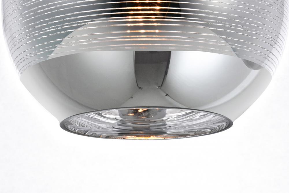 Stunning beauty at its most minimal, Reflection collection hanging fixtures lend a futuristic splendor to a kitchen, living room, or bedroom. Spherical, hemispherical, or lantern-shaped glass shades seem to float in midair from their slender steel cords. Polished and glossy as a mirror itself, this design comes in opaque or striped chrome, copper, or gold finishes.
