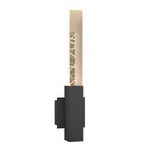 The sleek crisp lines of the Refraction Outdoor Sconce assures distinction of exterior spaces. Bold prismatic glass, with the elegant look of cut crystal, guides the light upward. A clear diffuser at the base of the sconce provides downward lighting. Etched with a geometric design, the light plays upon the pattern, adding a radiant textural quality.