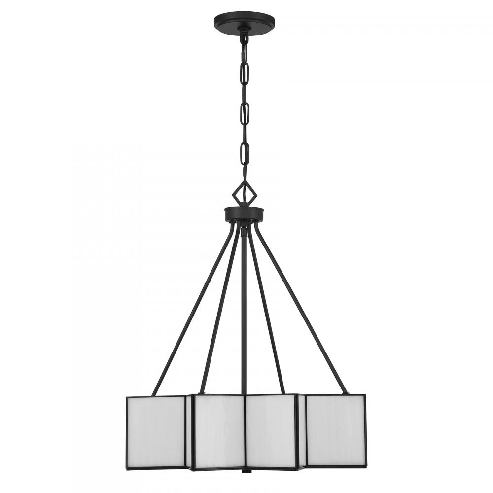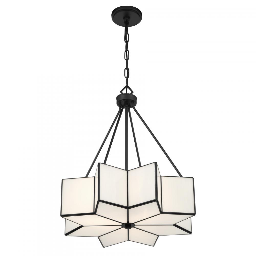 The Savoy House Reiling 3-light pendant is destined to shine in any space. Its eye-catching starburst shape is finished in Matte Black and decorated with panes of white glass. It is the perfect choice for bringing in Art Deco style glamour! Reiling is 23.5" in height and 20" in width. It uses three standard size bulbs of up to 60 watts per bulb. Bulbs not included. Comes with 120" of chain.