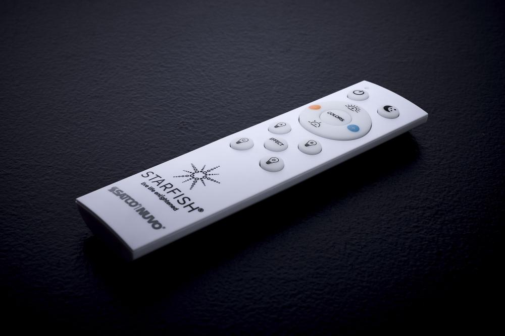 The STARFISH by SATCO Programmable Smart Remote offers alternative control over smart lighting, once the lighting devices are paired to the STARFISH App. Users can adjust the lighting within a 50-foot radius, allowing for convenient remote operation across multiple devices. The remote enables control over key lighting parameters, including brightness levels, color temperature adjustments, and the ability to cycle through a range of colors and dynamic effects. These features provide users with a customizable and versatile lighting experience, perfect for creating specific atmospheres or enhancing the functionality of any space. The integration of the programmable remote in conjunction with the Starfish App, ensures an intuitive and responsive interface for a wide range of lighting operations.