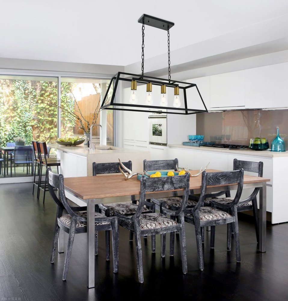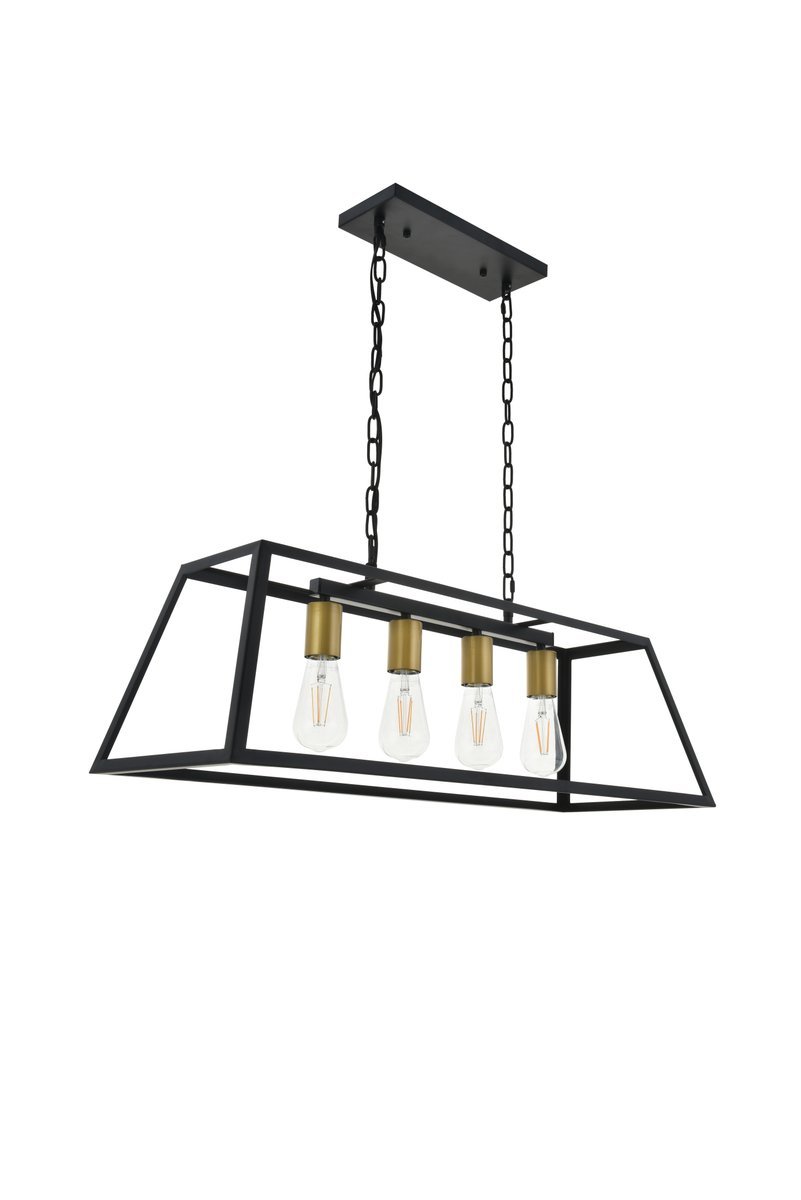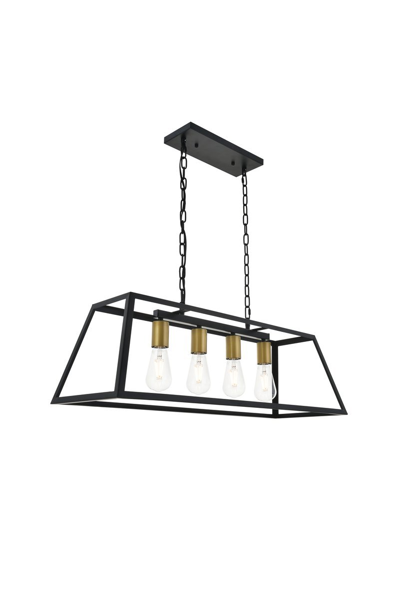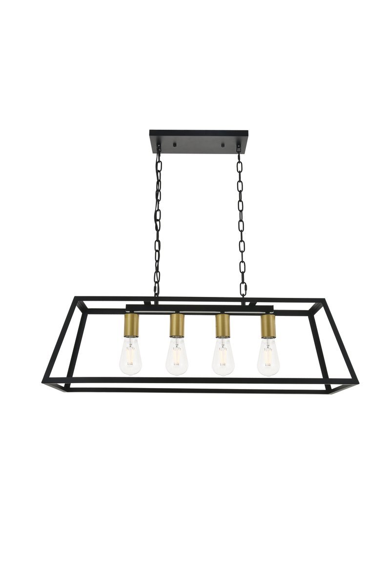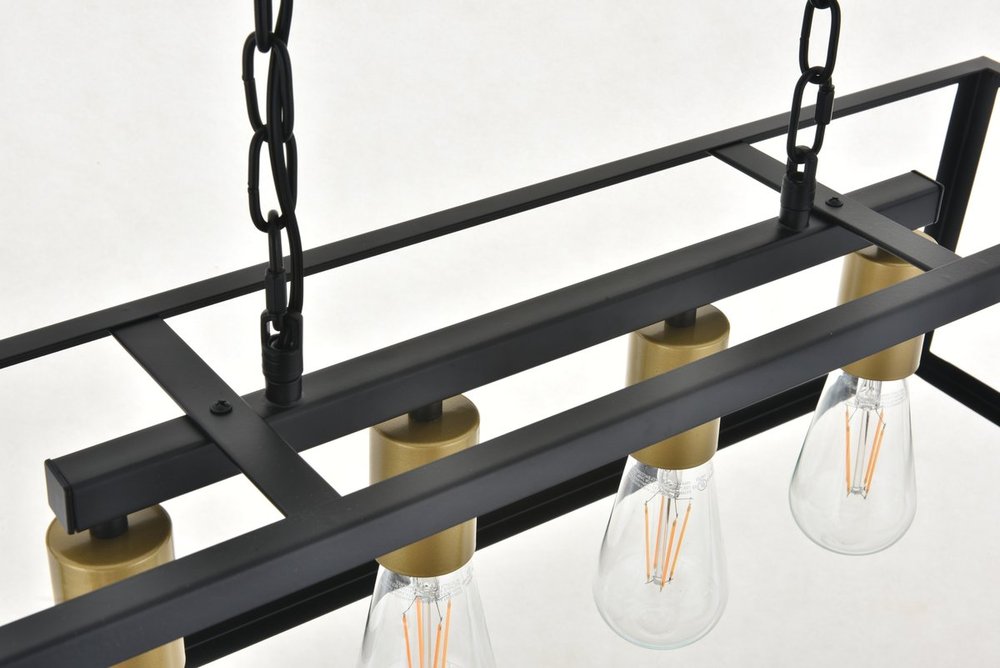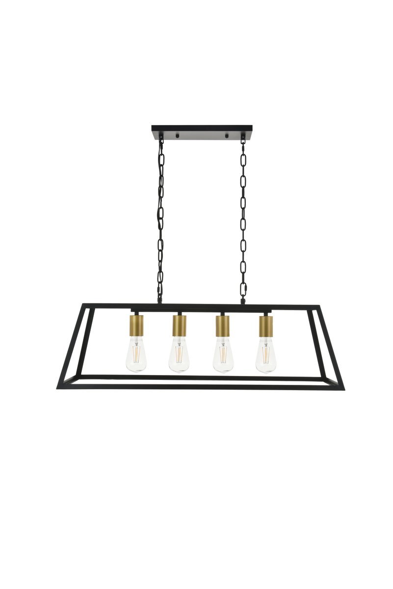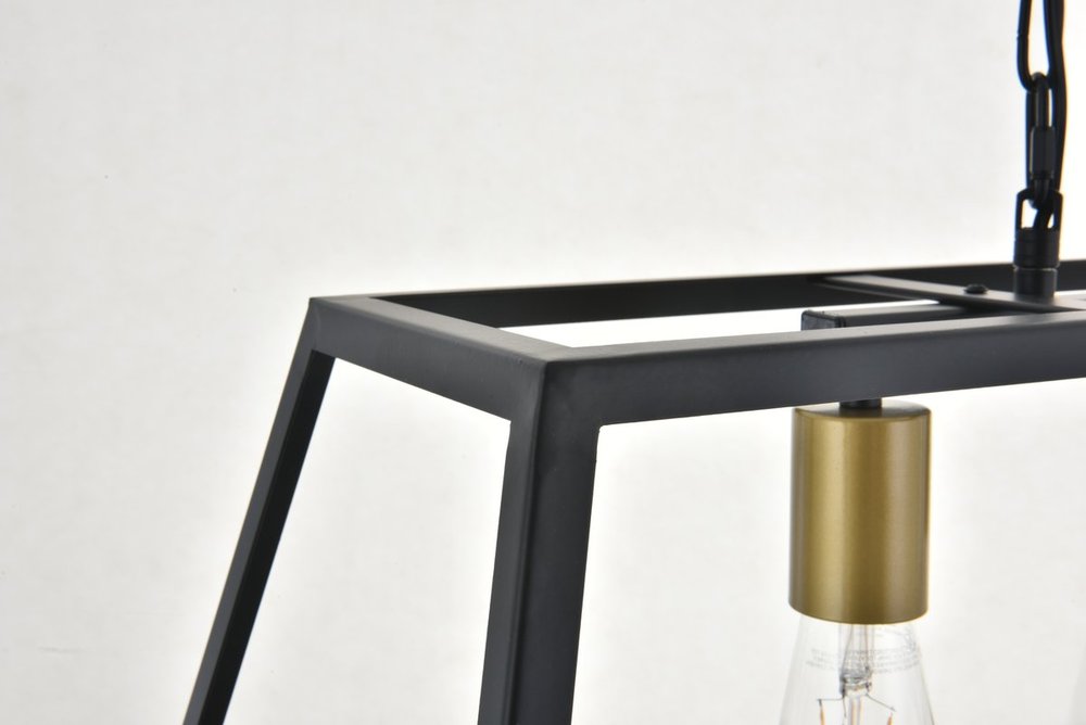 Modern two-toned brass and black finish 4-light pendant with an open geometric frame