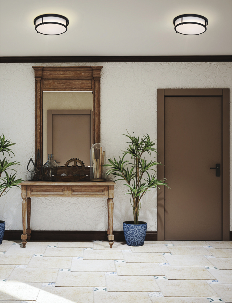 A steel framed acrylic shade transitional flush mount available in a variety of finishes and sizes. Featuring easy accessibility to the shade after installation, the locking mechanism that shade's frame rests on top of making removal quick for keeping