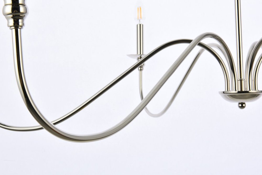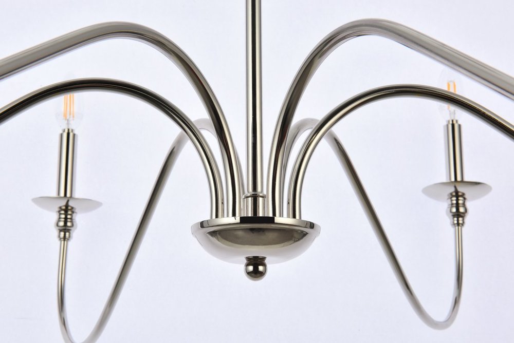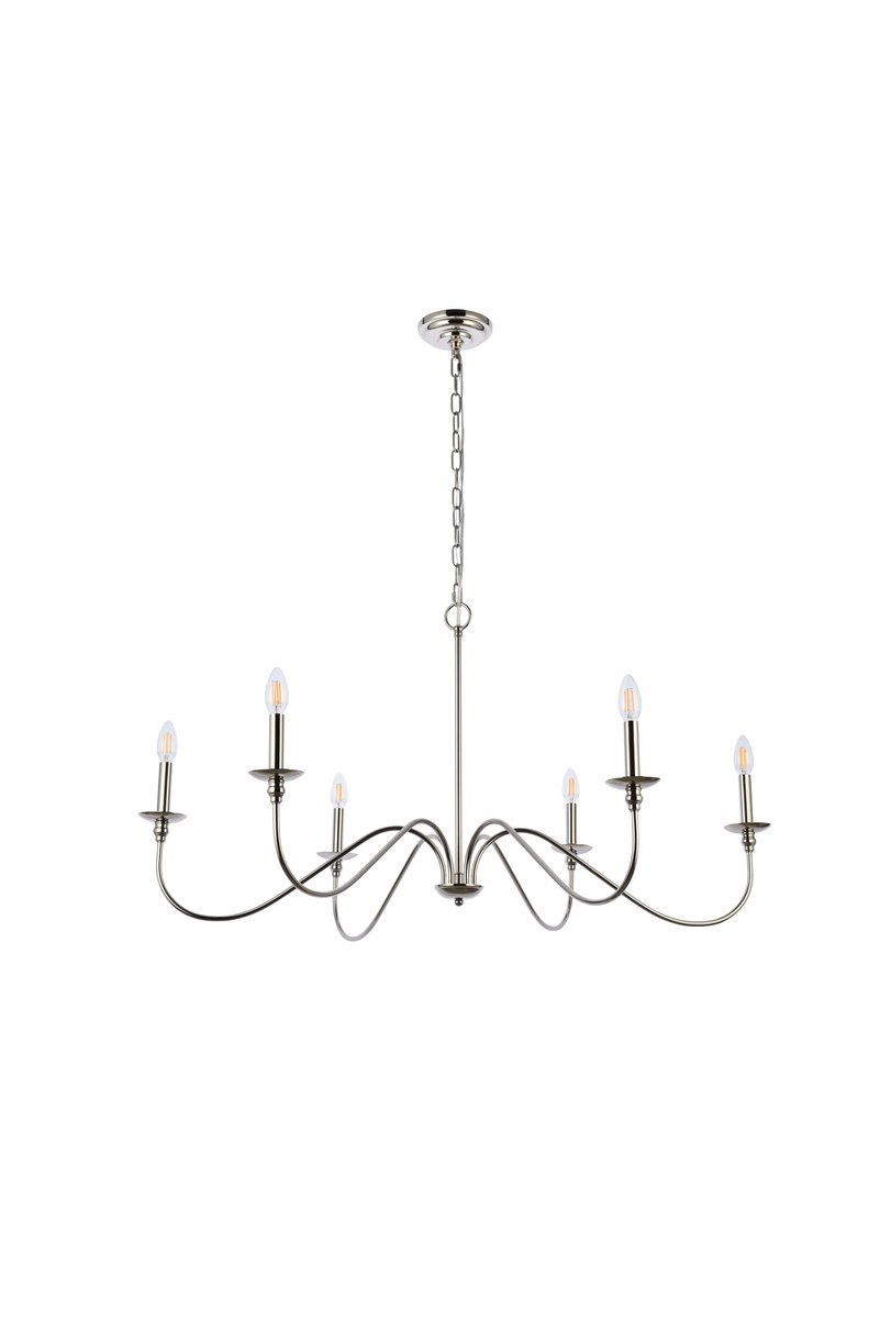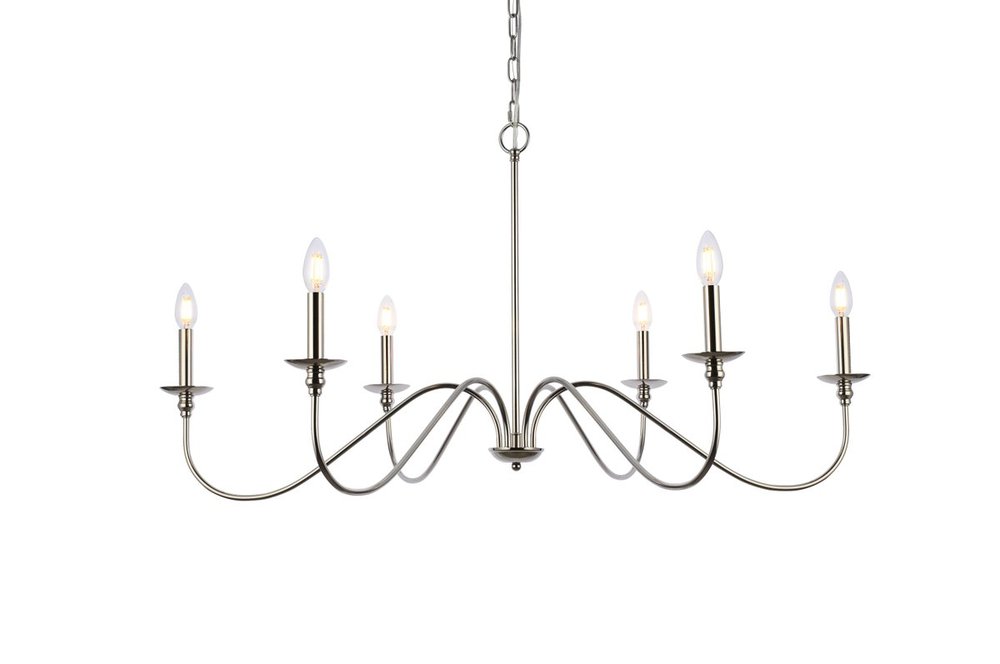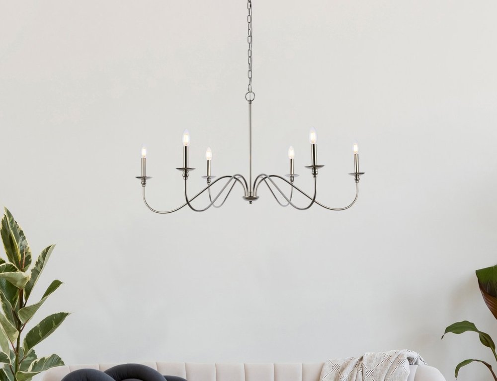 When you need a chandelier to brighten and accentuate a space without visually overpowering it, look to the clean, airy silhouette of the Rohan model. This tastefully simple fixture is Noteworthy for its understated beauty in a relatively large 48 inch span, with six gracefully undulating arms reaching wide to support petite bobèches and candelabra-style stems (bulbs Not included).