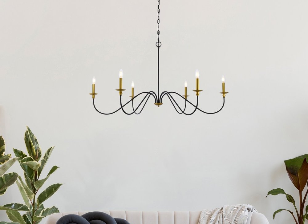 Requires 6 e12 candelabra base max 40 watt bulbs - not included