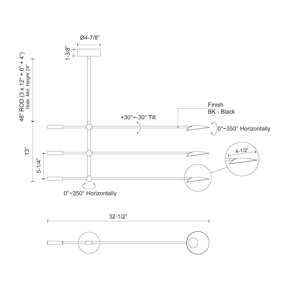 Kuzco Lighting Inc CH90132-BK - Rotaire 32-in Black LED Chandeliers