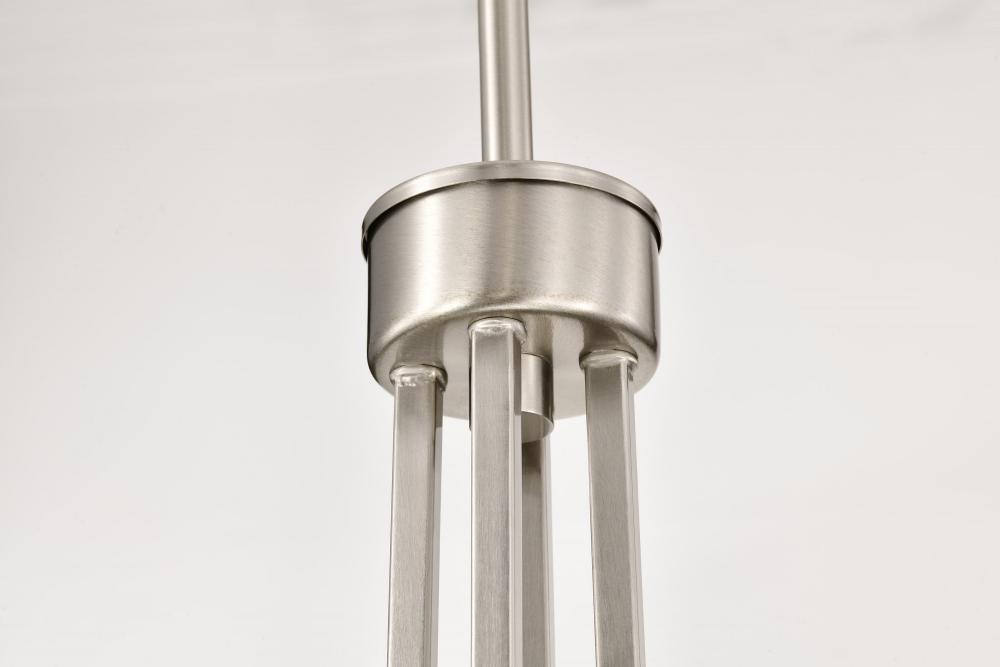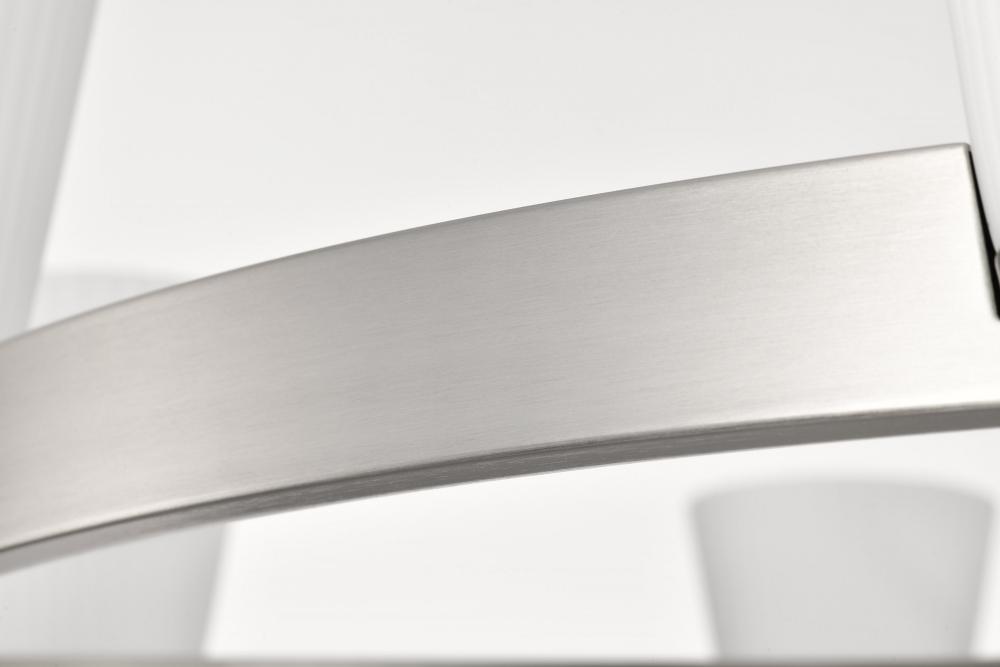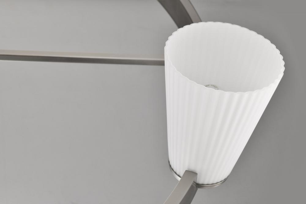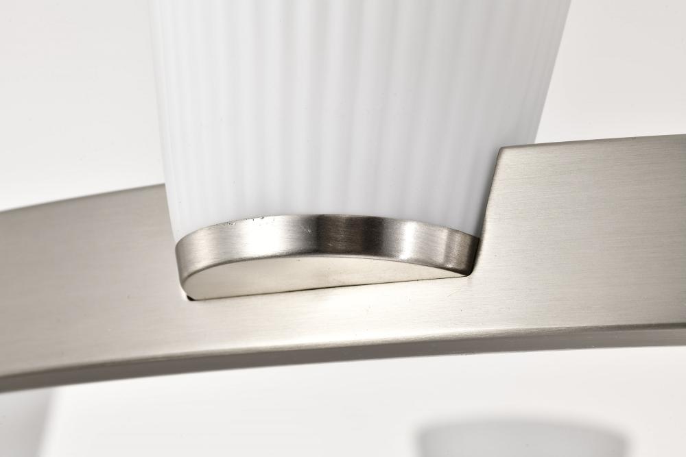Finished in Brushed Nickel with Ribbed White Glass
