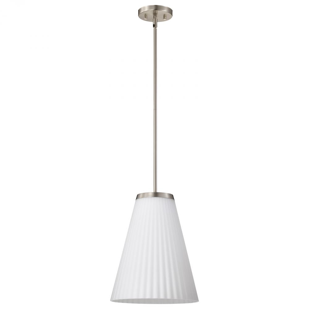 Royale; Large Pendant; Brushed Nickel Finish; Ribbed White Glass